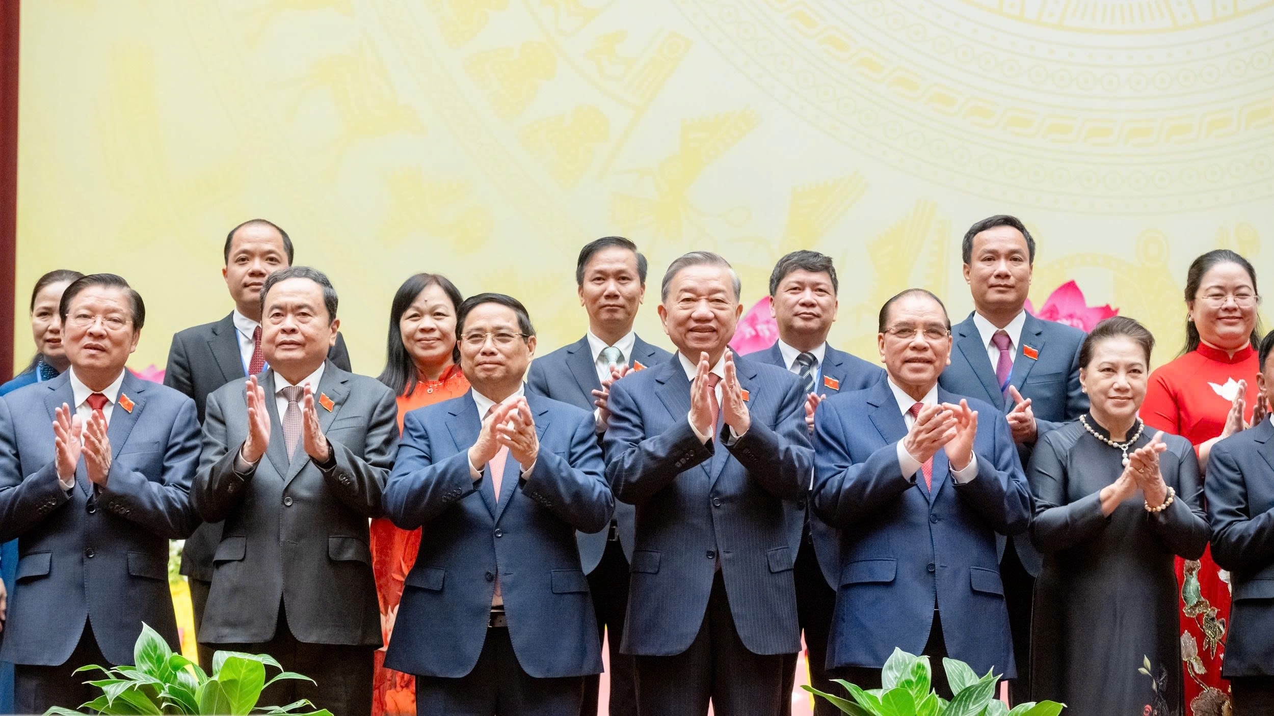 Tổng Bí thư Tô Lâm cùng lãnh đạo, nguyên Lãnh đạo Đảng, Nhà nước với các đại biểu dự Đại hội đại biểu Đảng bộ Quốc hội lần thứ I, nhiệm kỳ 2025 - 2030. Ảnh: Phạm Thắng