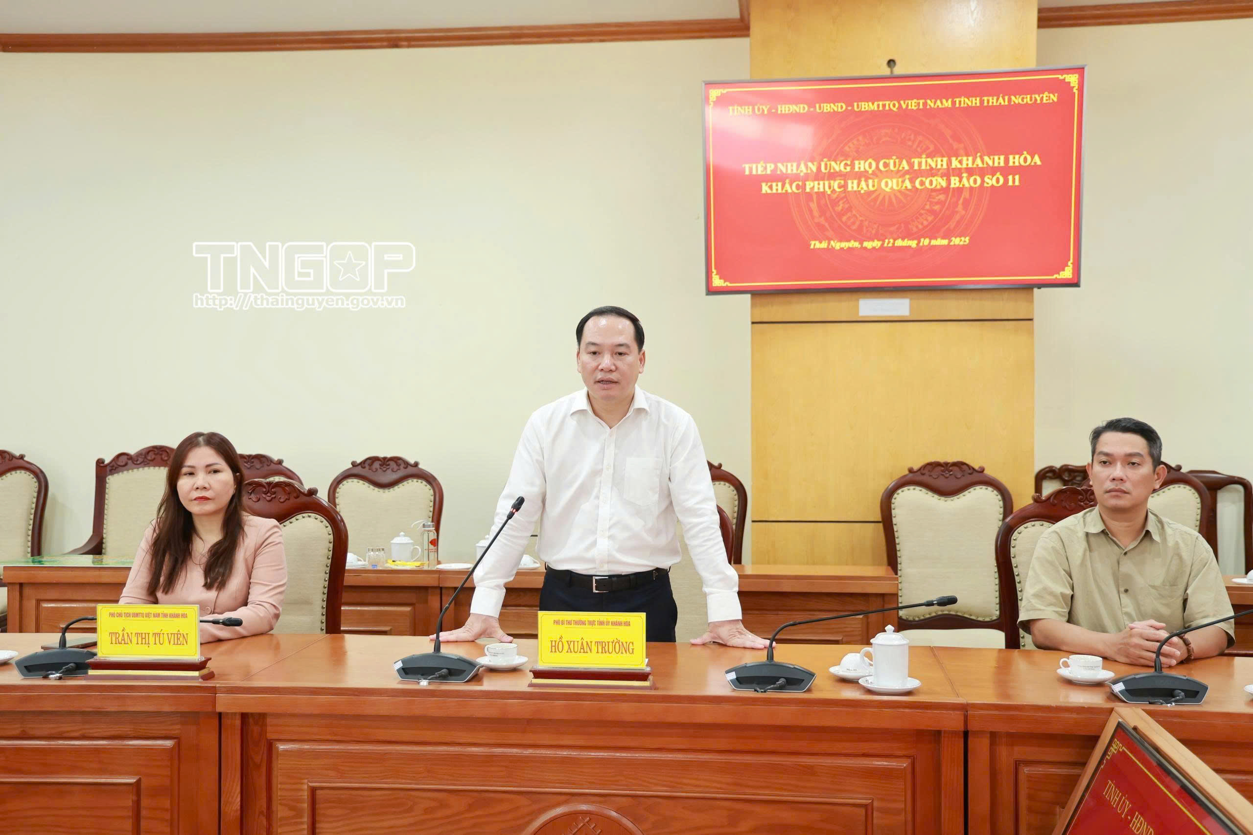 Phát biểu tại buổi làm việc, đồng chí Hồ Xuân Trường, Phó Bí thư Thường trực Tỉnh ủy Khánh Hòa nhấn mạnh: Khánh Hòa và Thái Nguyên tuy cách xa về địa lý nhưng luôn gắn bó bằng tinh thần tương thân tương ái của người Việt Nam. Món quà 1 tỷ đồng là tấm lòng của cán bộ, đảng viên và Nhân dân Khánh Hòa, với mong muốn góp phần nhỏ bé giúp Nhân dân Thái Nguyên sớm khắc phục hậu quả thiên tai, ổn định đời sống và sản xuất.