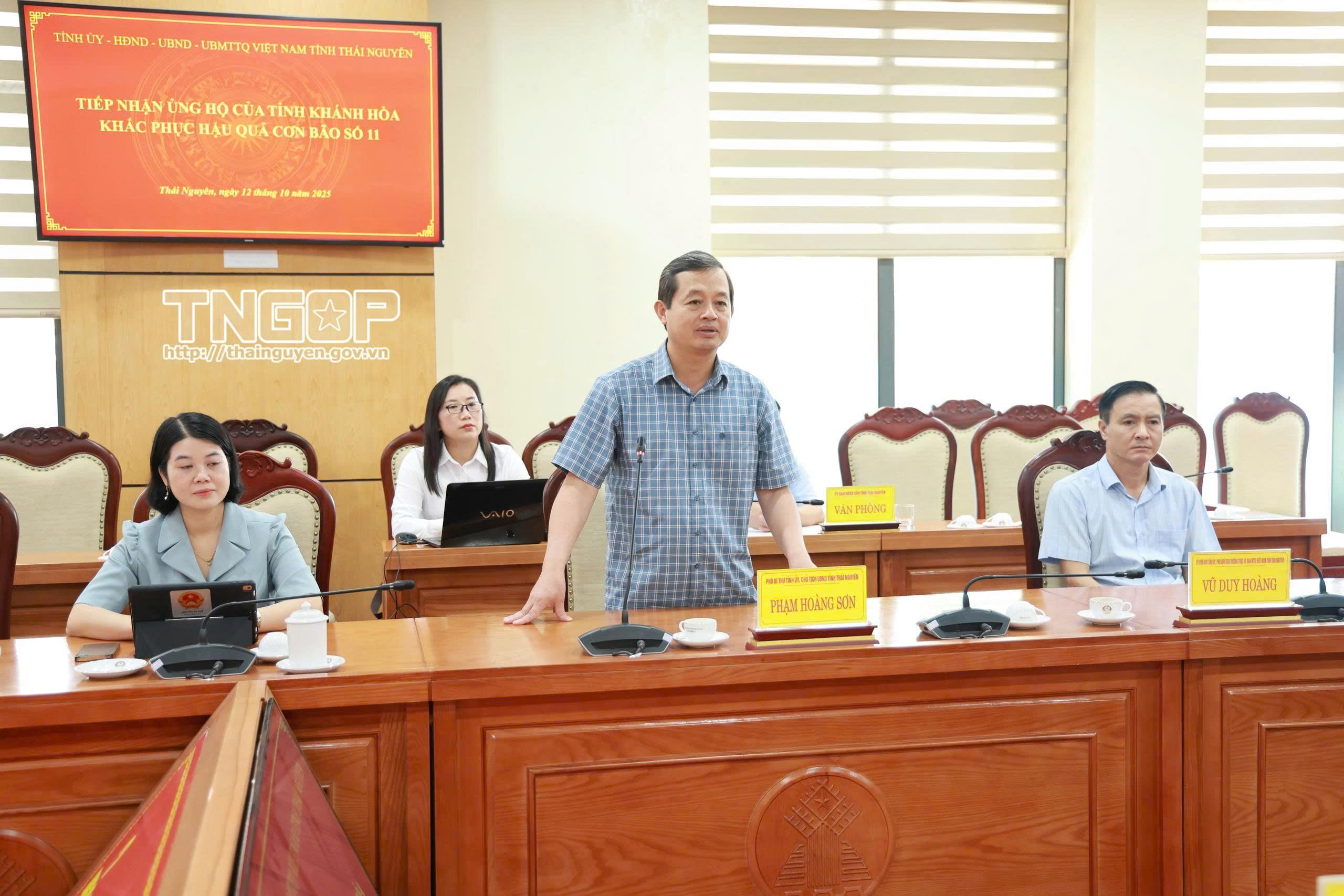 Tại buổi tiếp nhận, đồng chí Chủ tịch UBND tỉnh Thái Nguyên bày tỏ sự trân trọng, cảm ơn tình cảm, trách nhiệm và sự sẻ chia sâu sắc của Đảng bộ, chính quyền và Nhân dân tỉnh Khánh Hòa đối với đồng bào Thái Nguyên trong thời điểm khó khăn. Đồng chí nhấn mạnh, nguồn kinh phí 1 tỷ đồng do tỉnh Khánh Hòa trao tặng sẽ được sử dụng kịp thời, đúng mục đích, hỗ trợ người dân tại các khu vực bị ảnh hưởng nặng nề nhất. Sự chung tay của các địa phương, trong đó có Khánh Hòa, không chỉ góp phần giúp Thái Nguyên khắc phục hậu quả sau bão, mà còn thể hiện tinh thần đoàn kết, “tương thân tương ái”, gắn bó giữa các tỉnh, thành trên mọi miền Tổ quốc.