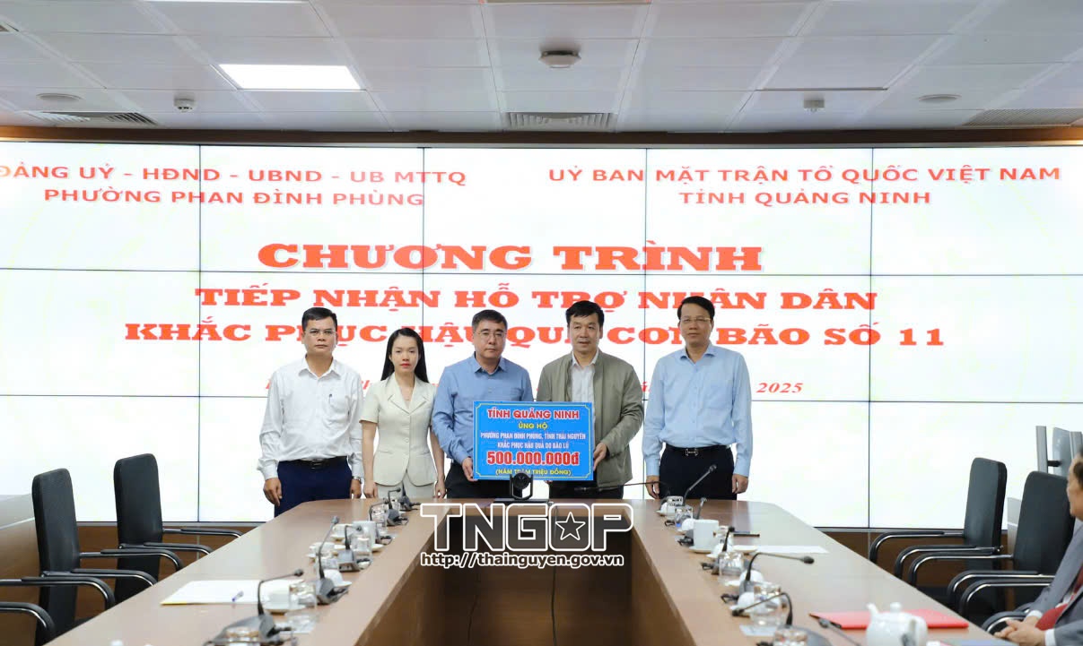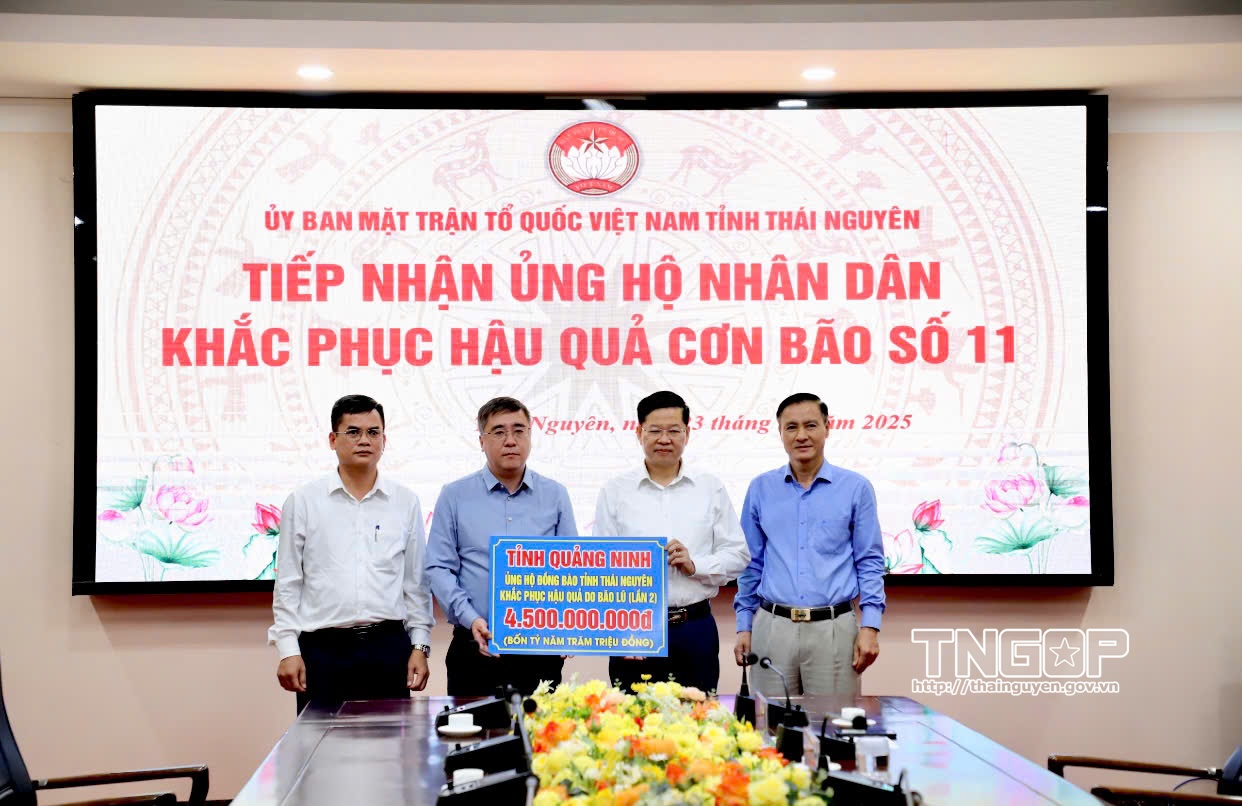 Theo đó, 4,5 tỷ đồng sẽ được chuyển qua Quỹ cứu trợ tỉnh để giúp Nhân dân tỉnh Thái Nguyên khắc phục hậu quả thiên tai, 500 triệu đồng được trao trực tiếp hỗ trợ Nhân dân phường Phan Đình Phùng - địa phương chịu thiệt hại nặng nề do mưa lũ gây ra.