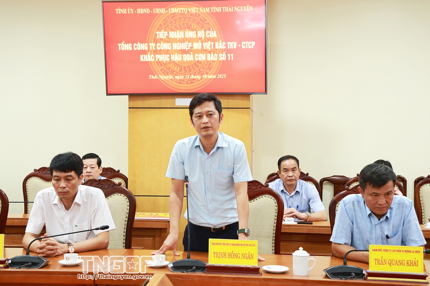 Đồng chí Trịnh Hồng Ngân, Tổng Giám đốc Tổng Công ty Công nghiệp Mỏ Việt Bắc đã chia sẻ với những khó khăn, mất mát của Nhân dân Thái Nguyên, đồng thời mong muốn chung tay góp sức cùng tỉnh sớm khắc phục hậu quả bão lũ, ổn định đời sống người dân. Thái Nguyên cũng là địa bàn có nhiều đơn vị của Tổng Công ty đang hoạt động, vì vậy, việc hỗ trợ hôm nay thể hiện trách nhiệm xã hội và tình cảm gắn bó của doanh nghiệp với địa phương.