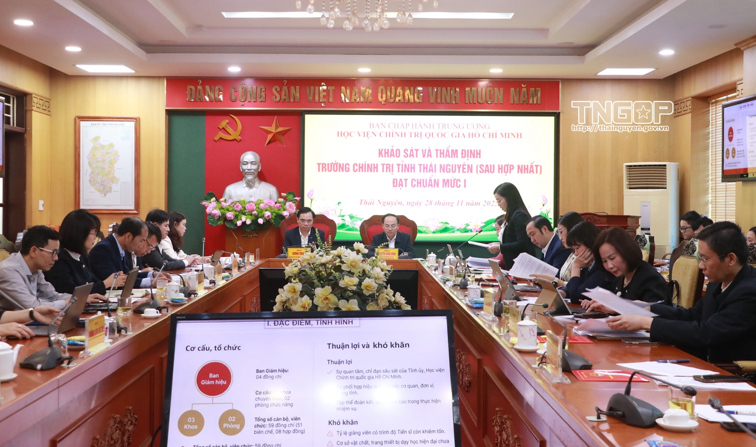 Theo báo cáo, sau sáp nhập, Trường Chính trị tỉnh Thái Nguyên có 59 cán bộ, viên chức và hợp đồng; bộ máy gồm Ban Giám hiệu 4 đồng chí, 3 khoa và 2 phòng. Nhà trường nhận được sự quan tâm, chỉ đạo sát sao của tỉnh và Học viện; đội ngũ cán bộ đoàn kết, quyết tâm hoàn thành nhiệm vụ...