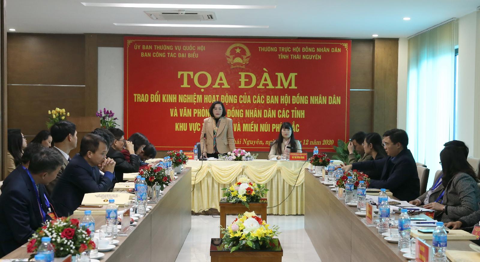 Chiều ngày 24/12, đồng chí Nguyễn Thị Thanh, Ủy viên BCH Trung ương Đảng, Phó Trưởng Ban Tổ chức Trung ương, Phó Trưởng Ban Thường trực Ban Công tác đại biểu, Ủy ban Thường vụ Quốc hội và đồng chí Hà Thị Bích Hồng, Phó Chủ tịch HĐND tỉnh Thái Nguyên đồng chủ trì Tọa đàm trao đổi kinh nghiệm hoạt động của các Ban HĐND và Văn phòng HĐND các tỉnh khu vực Trung du và miền núi phía Bắc.