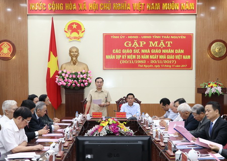 Nhân kỷ niệm 35 năm Ngày Nhà giáo Việt Nam (20/11/1982 - 20/11/2017), chiều 15/11, Tỉnh ủy, HĐND, UBND tỉnh Thái Nguyên tổ chức gặp mặt các Giáo sư, Nhà giáo Nhân dân đã và đang công tác tại tỉnh Thái Nguyên. Dự buổi gặp mặt có các đồng chí: Trần Quốc Tỏ, Uỷ viên Trung ương Đảng, Bí thư Tỉnh uỷ, Trưởng Đoàn ĐBQH tỉnh; Vũ Hồng Bắc, Phó Bí thư Tỉnh ủy, Chủ tịch UBND tỉnh; Trịnh Việt Hùng, Phó Chủ tịch UBND tỉnh; lãnh đạo một số sở, ngành, đơn vị của tỉnh.