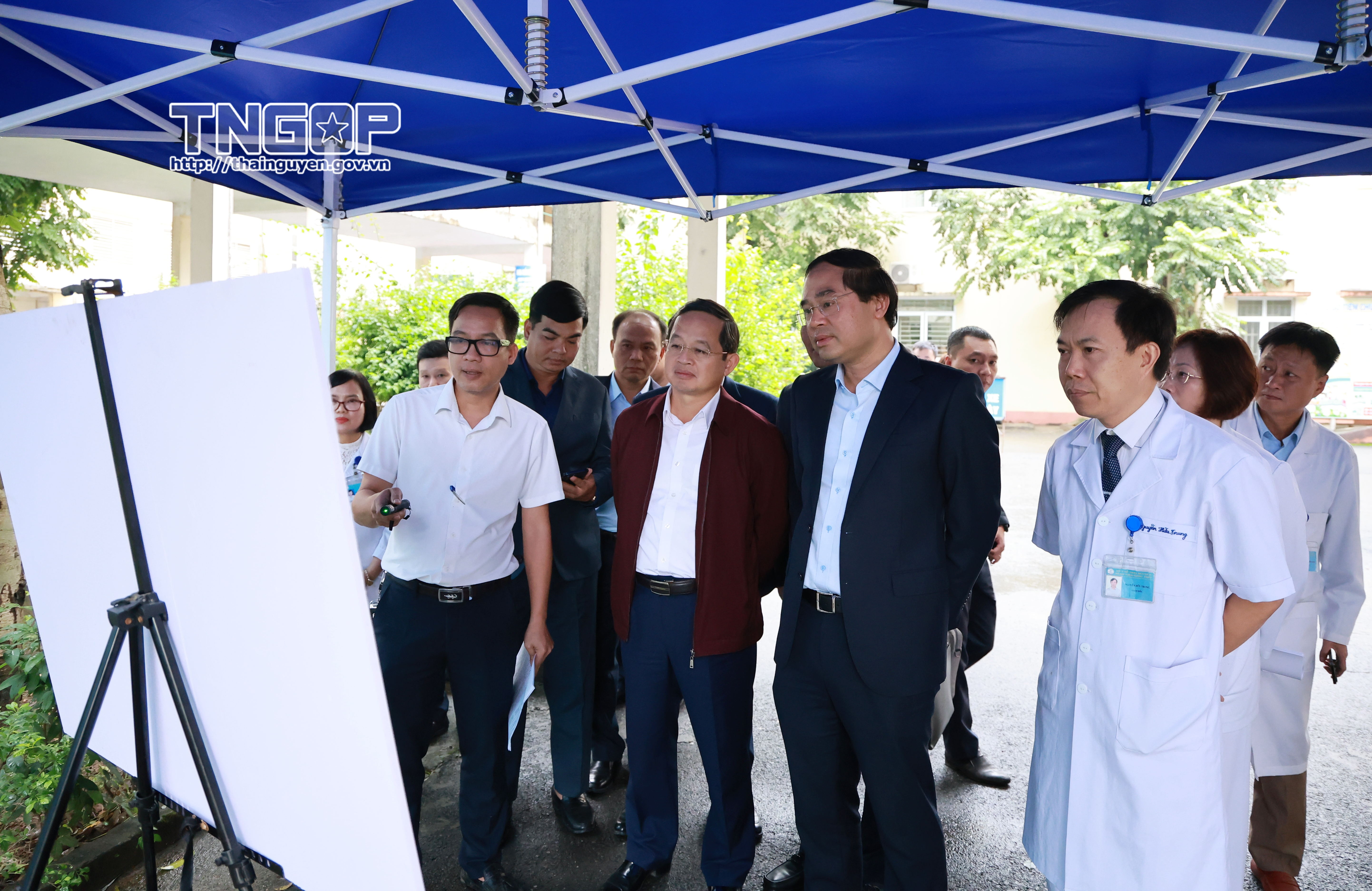 Làm việc tại các bệnh viện, Đoàn công tác đã trực tiếp xem sơ đồ phương án xây dựng, nâng cấp cơ sở vật chất của các bệnh viện; đồng thời nghe lãnh đạo bệnh viện báo cáo về tình hình, kết quả hoạt động trong 9 tháng năm 2025; đề xuất, kiến nghị một số nội dung về đầu tư hạ tầng, mua sắm trang thiết bị y tế.