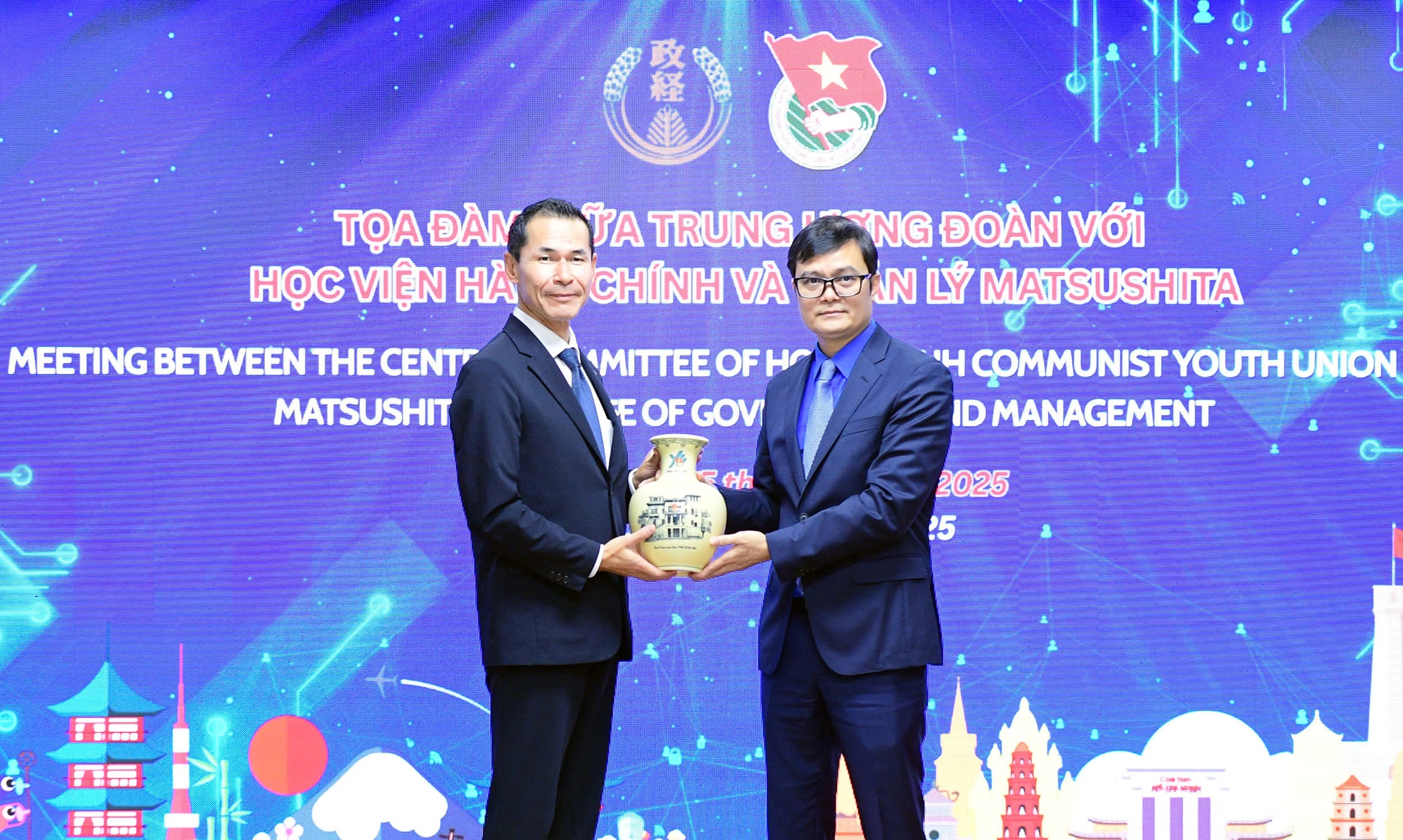Sáng nay 25.11, tại Hà Nội, T.Ư Đoàn TNCS Hồ Chí Minh đã tọa đàm với Đoàn đại biểu Học viện Hành chính và Quản lý Matsushita (Nhật Bản). Chủ trì buổi tọa đàm có anh Bùi Quang Huy, Ủy viên dự khuyết T.Ư Đảng, Bí thư thứ nhất T.Ư Đoàn; ông Ozeki Kenji, Giám đốc Học viện Hành chính và Quản lý Matsushita.