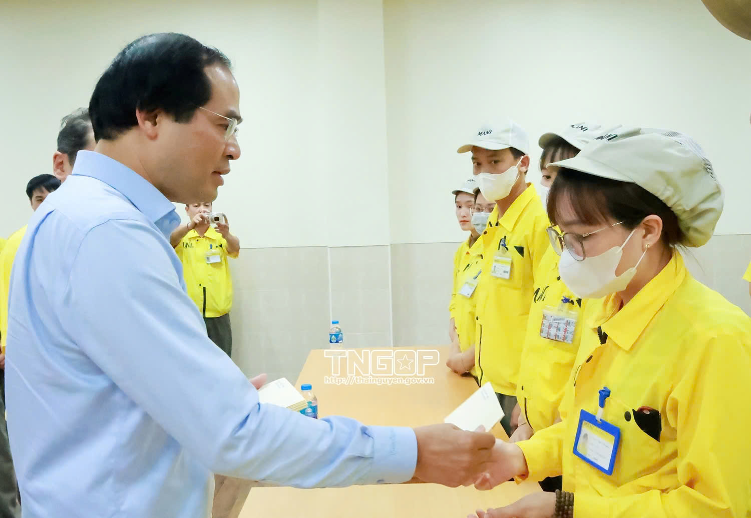 Đồng chí Bí thư Tỉnh ủy trao quà động viên công nhân Công ty TNHH Mani Hà Nội sinh sống tại khu vực chịu ảnh hưởng bởi hoàn lưu bão số 11