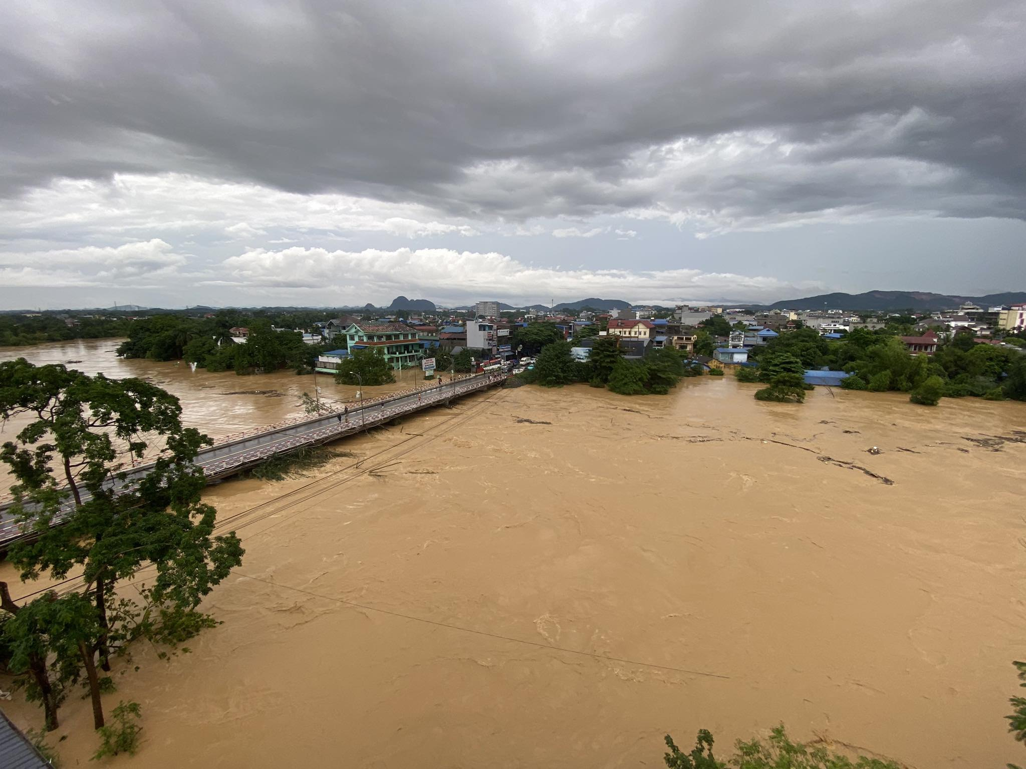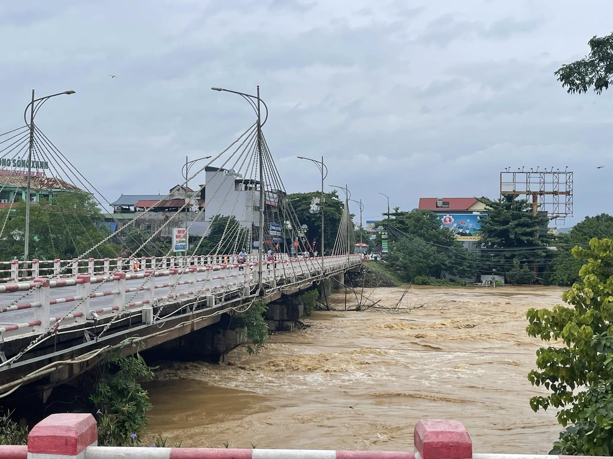 Cầu Gia Bảy trong thời điểm nước dâng cao do hoàn lưu bão số 11 gây ra