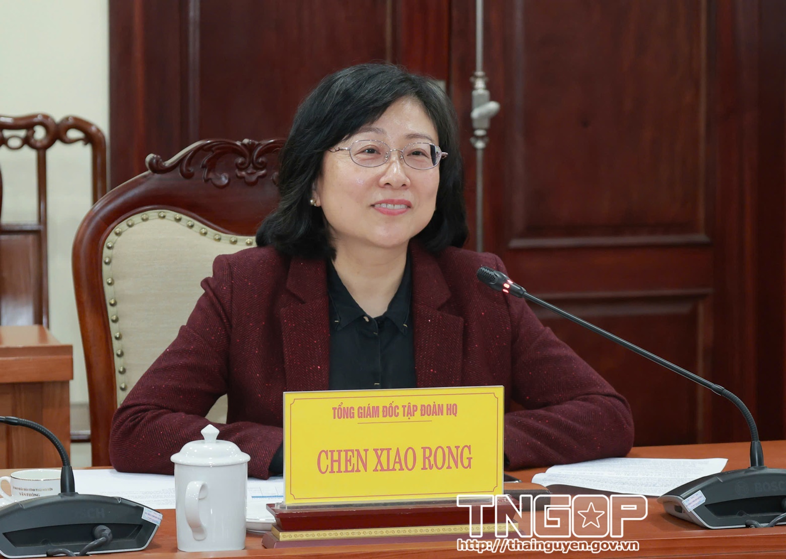 Tại buổi làm việc, bà Trần Hiểu Dung cho biết: Tập đoàn HQ được thành lập năm 2005, có trụ sở tại Thượng Hải, là tập đoàn công nghệ lớn, chuyên sản xuất và cung cấp các sản phẩm công nghệ thông minh như điện thoại di động, máy tính bảng, máy tính xách tay và nhiều sản phẩm điện tử thông minh khác. Tại Thái Nguyên, Công ty TNHH RQ Technology Electronics Việt Nam đã được thành lập tháng 8/2023 và đang triển khai dự án tại Khu công nghiệp Yên Bình.