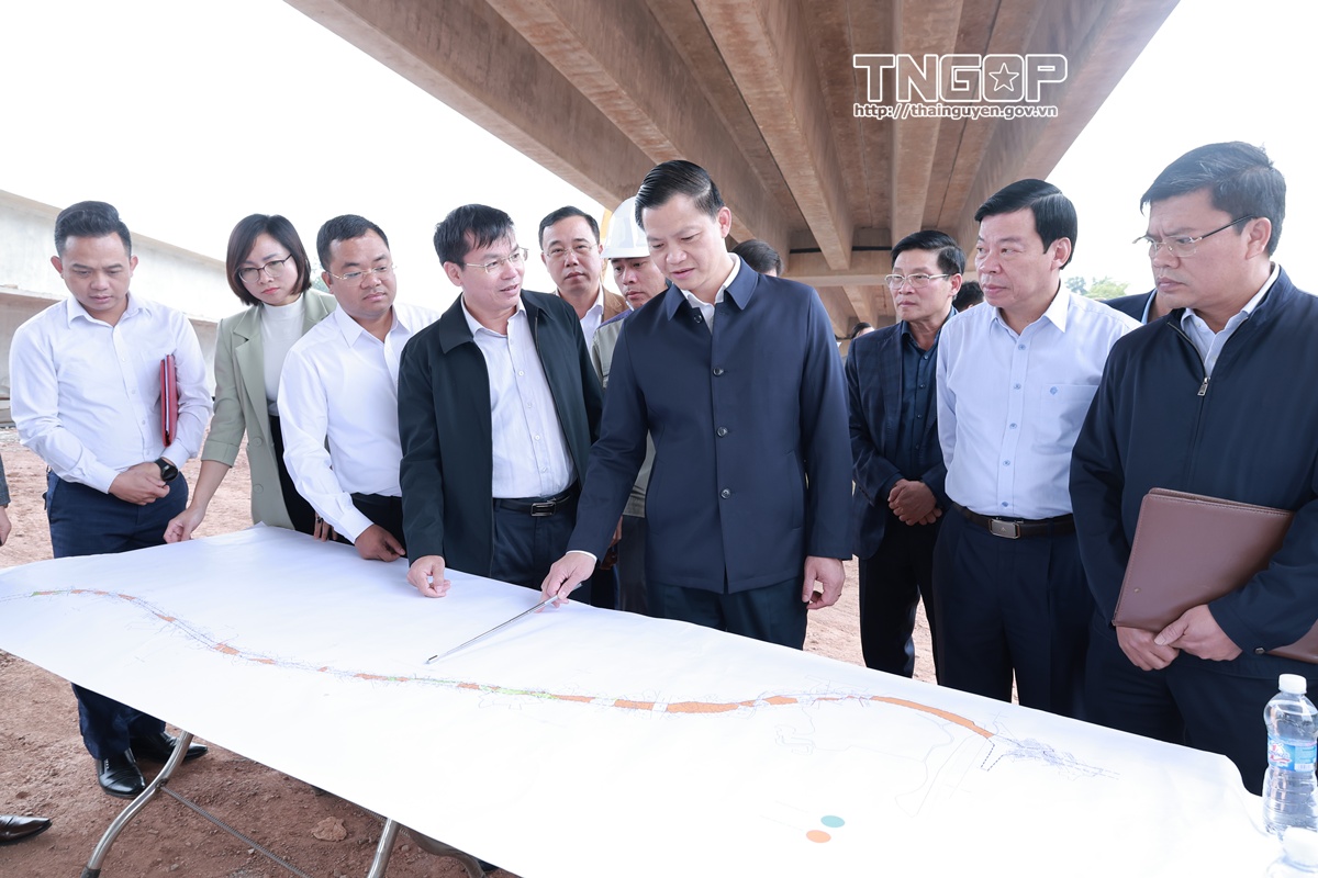 Chủ tịch UBND tỉnh kiểm tra thực địa Dự án đường Vành đai I (đoạn cầu vượt sông Cầu thuộc xã Đồng Hỷ)