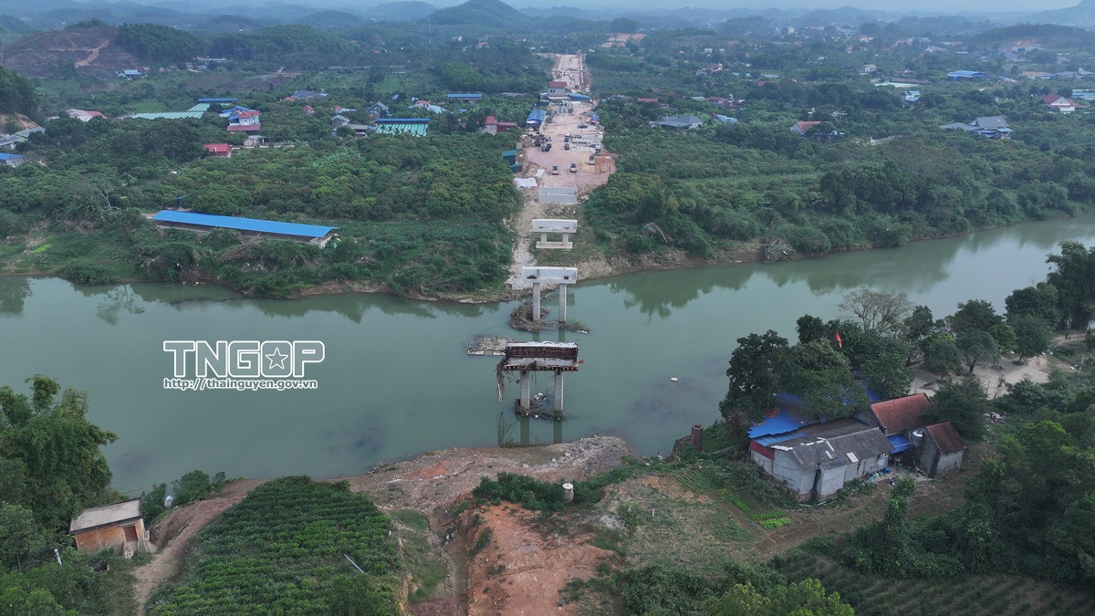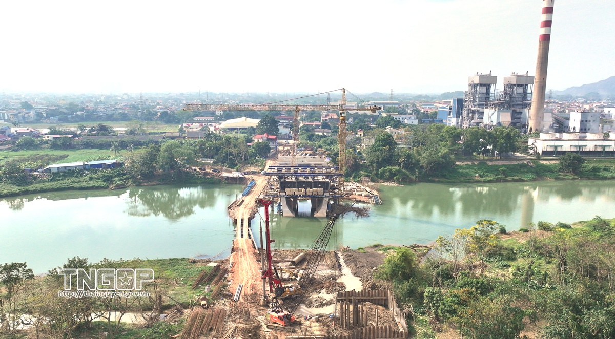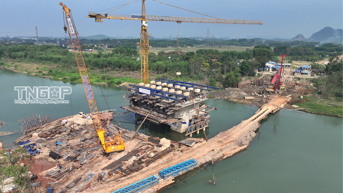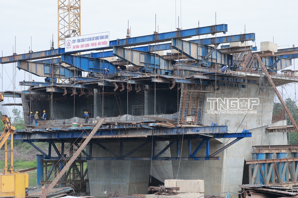 Các trụ cầu Dự án đường Vành đai I vượt sông Cầu đã hoàn thiện, chuẩn bị lắp đặt hệ thống dầm cầu