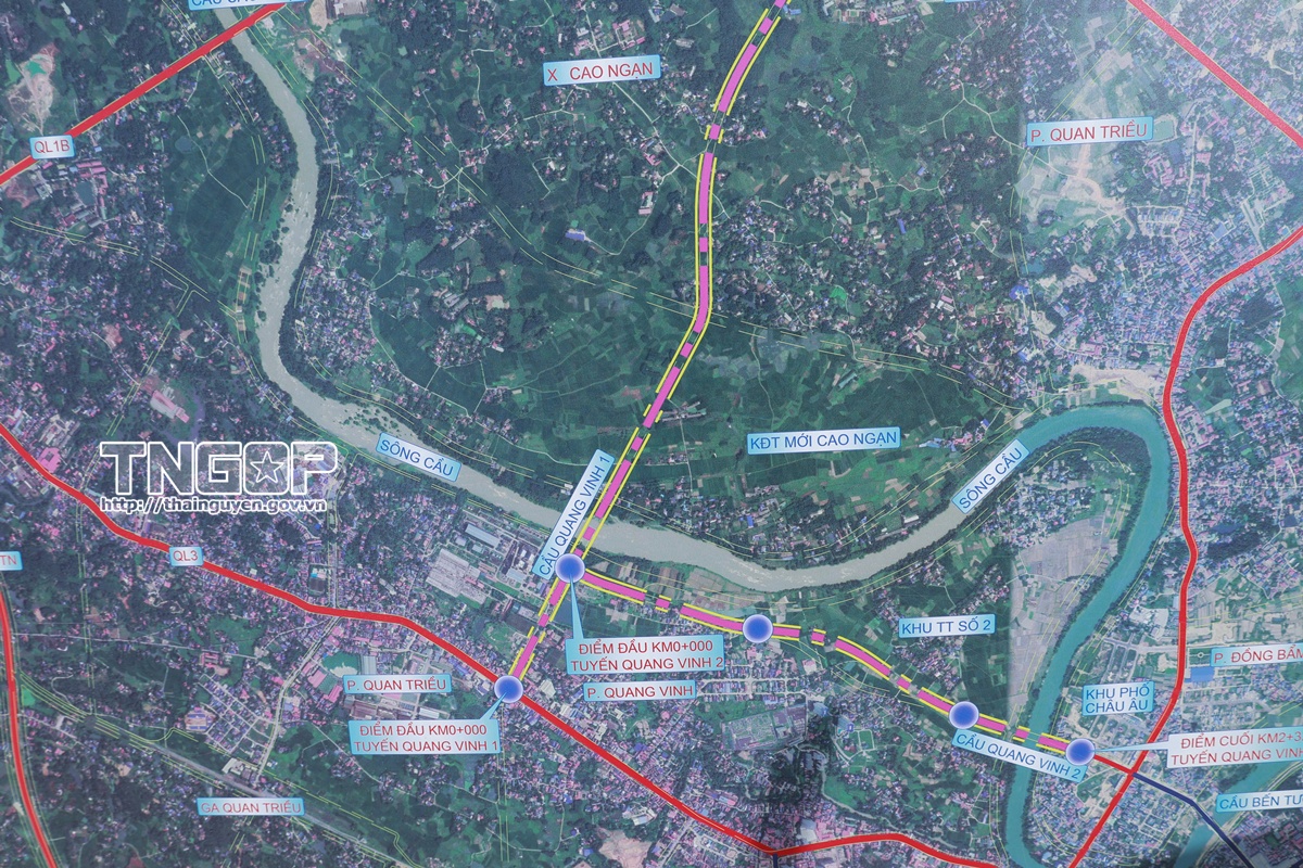 Sơ đồ hệ thống cầu vượt Quang Vinh 1, Quang Vinh 2 bắc qua sông Cầu