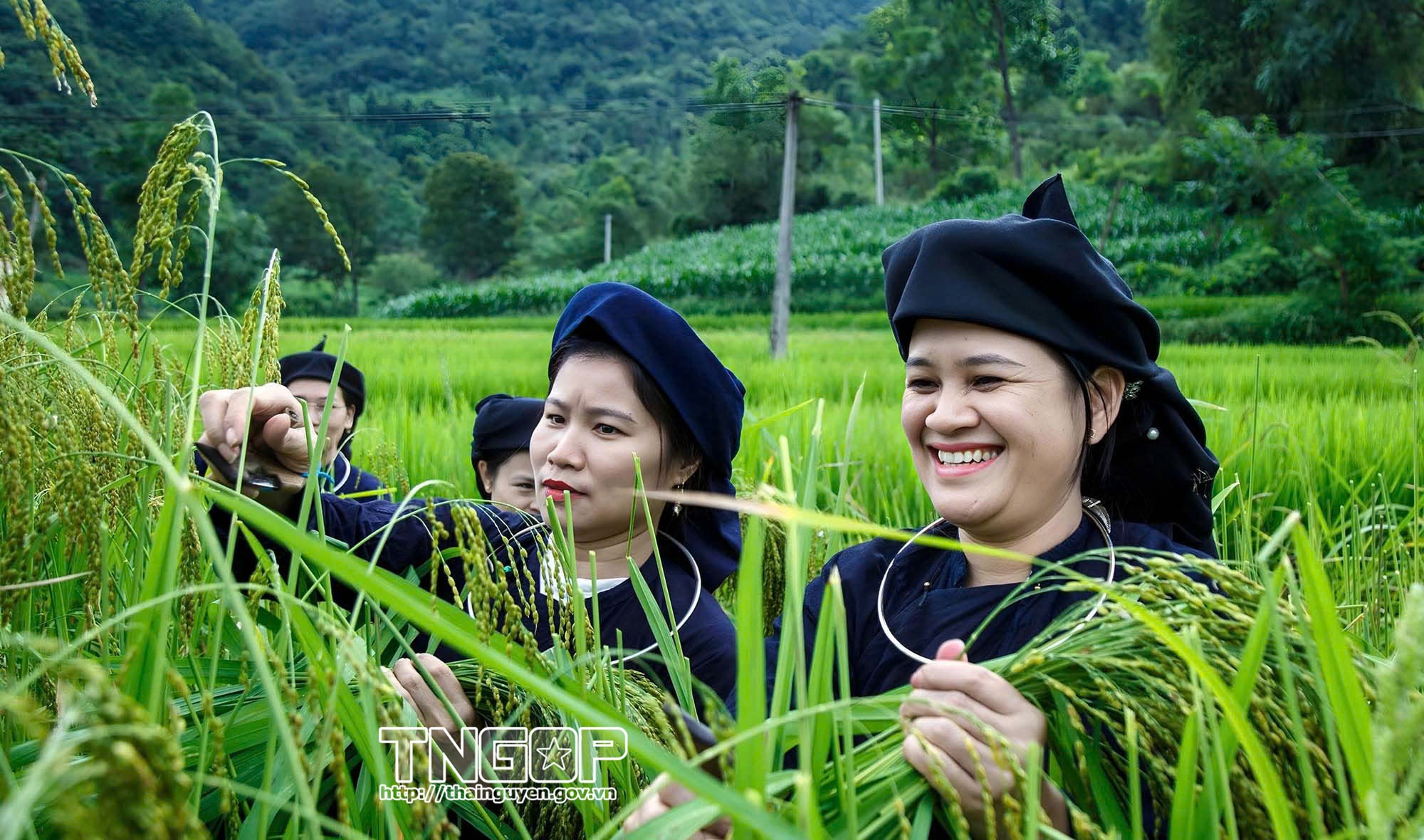 Người dân Ngân Sơn hái lúa nếp non Khẩu nua Lếch về làm cốm