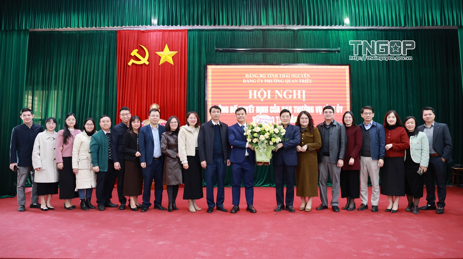 Theo Quyết định số 234-QĐ/TU ngày 31/12/2025 của Tỉnh ủy Thái Nguyên về công tác cán bộ, Ban Thường vụ Tỉnh ủy Quyết định điều động, chỉ định đồng chí Lê Anh Quang, Trưởng Phòng Kinh tế, Văn phòng UBND tỉnh tham gia Ban Chấp hành, Ban Thường vụ và giữ chức vụ Phó Bí thư Đảng ủy Phường Quan Triều nhiệm kỳ 2025 - 2030, kể từ ngày 10/01/2026.