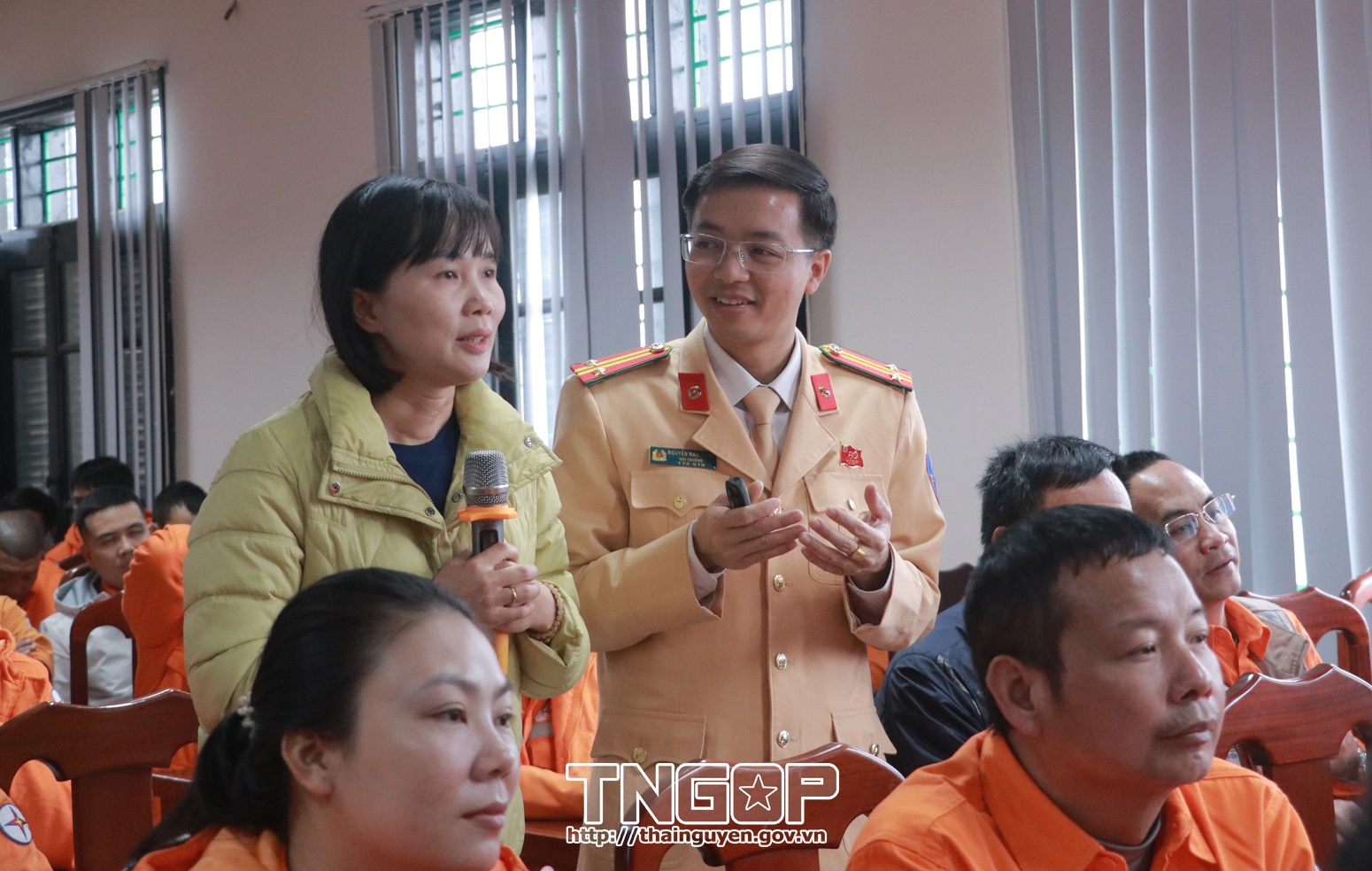 Đại diện Phòng CSGT đã phổ biến các quy định pháp luật mới về trật tự ATGT đường bộ, quy tắc khi tham gia giao thông và chế tài xử phạt các hành vi vi phạm. Nội dung tuyên truyền nhấn mạnh việc gắn các giá trị văn hóa doanh nghiệp như tuân thủ, trách nhiệm và chuyên nghiệp với hành vi khi tham gia giao thông, hướng tới hình thành hình ảnh người lao động ngành điện gương mẫu, an toàn và văn minh.