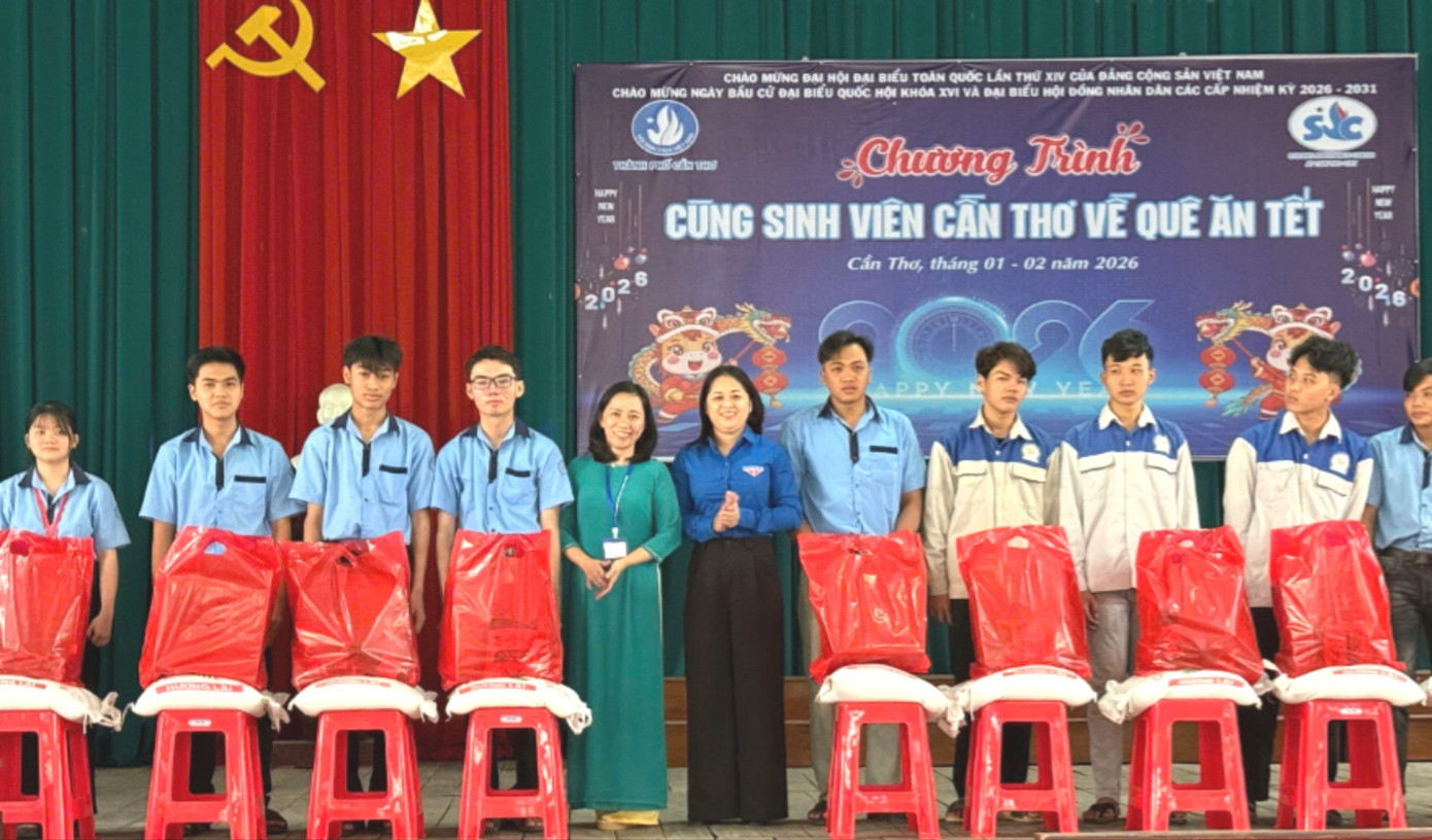 Ngày 12/1, Thành Đoàn và Hội Sinh viên TP. Cần Thơ tổ chức chương trình Cùng Sinh viên Cần Thơ về quê ăn Tết, tại trường Cao đẳng Cơ điện và Nông nghiệp Nam Bộ. Đây là hoạt động mừng kỷ niệm 76 năm Ngày truyền thống học sinh, sinh viên và Hội Sinh viên Việt Nam (09/01/1950 – 09/01/2026), chào mừng Đại hội Đảng toàn quốc lần thứ XIV nhiệm kỳ 2026 - 2031.