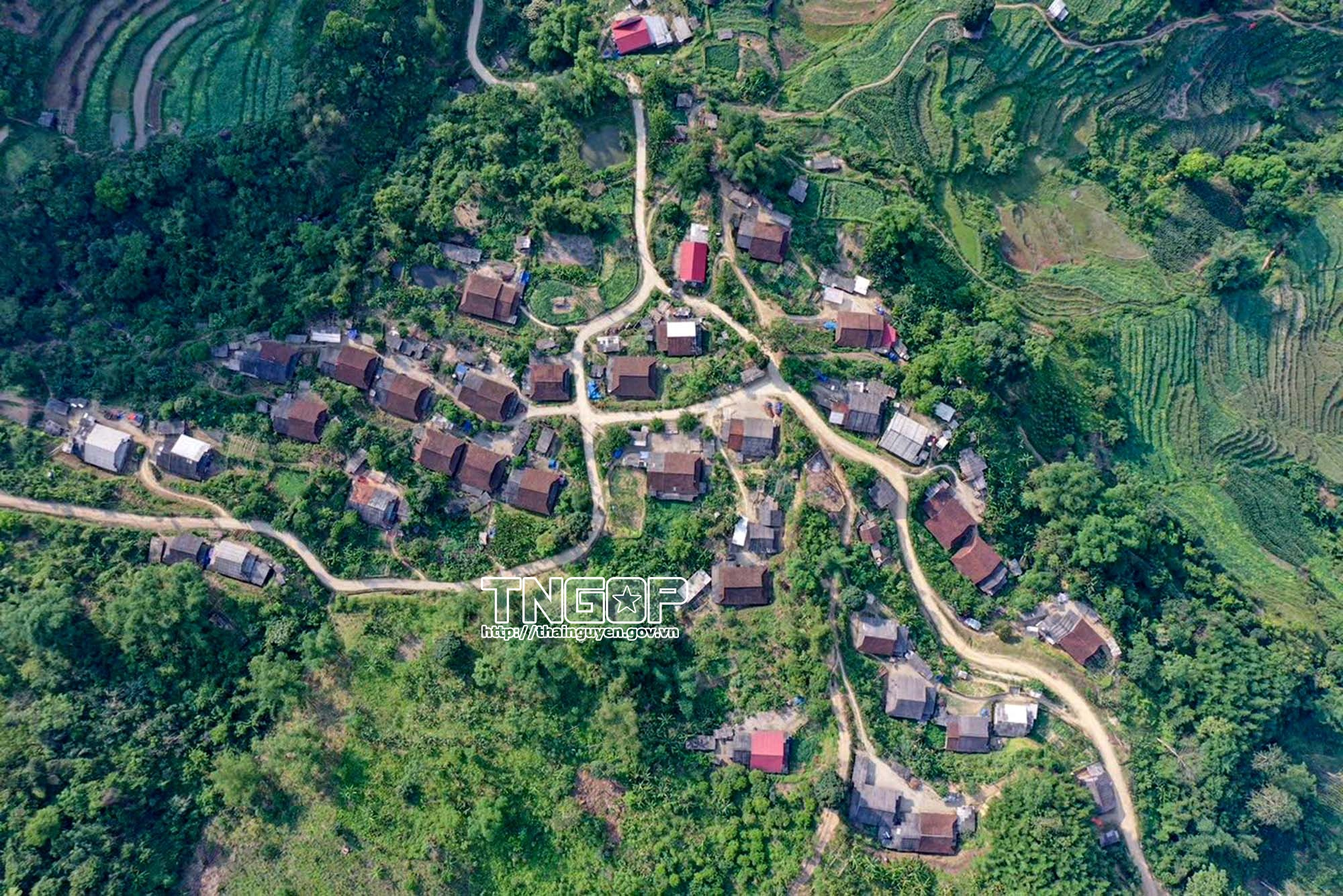 Những ngôi nhà ba gian của người Dao Quế Lâm, thôn Phiêng Phàng từ góc nhìn trên cao