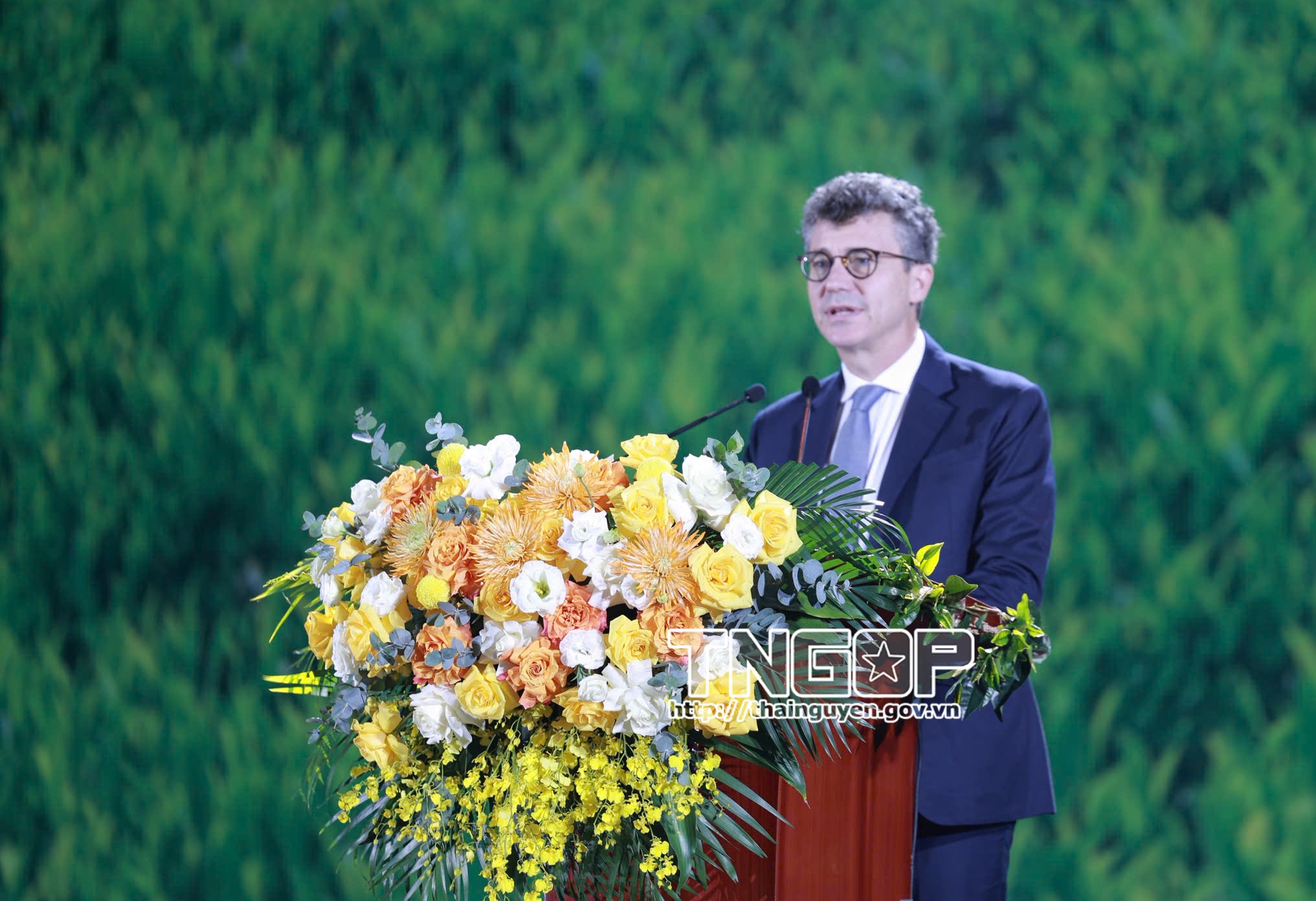 Phát biểu tại chương trình khai mạc, Ngài Jonathan Wallace Baker, Trưởng đại diện Văn phòng UNESCO tại Việt Nam bày tỏ niềm vui khi được đến tham dự Lễ hội “Thái Nguyên - Hương sắc danh trà”, đặc biệt là thưởng thức trà ở Thái Nguyên - thủ phủ trà của Việt Nam, nơi mỗi tán chè, mỗi đồi chè không chỉ hình ảnh của thiên nhiên tươi đẹp, mà còn là kết tinh của tri thức, sự cần mẫn và niềm tự hào của cộng đồng các dân tộc sinh sống trên địa bàn tỉnh Thái Nguyên. Ngài Jonathan Wallace Baker thay mặt UNESCO gửi tới UBND tỉnh Thái Nguyên, Ban Tổ chức cùng các đối tác tham dự chương trình lời cảm ơn trân trọng, dành tới những người giữ hồn cho cây chè lời tri ân vì đã luôn truyền cảm hứng tôn vinh những giá trị sống động của di sản văn hóa trà Việt ra thế giới.