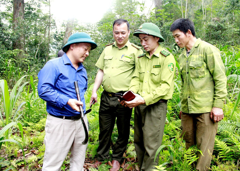 Cán bộ ngành lâm nghiệp và kiểm lâm ứng dụng chuyển đổi số trong quản lý, bảo vệ rừng.