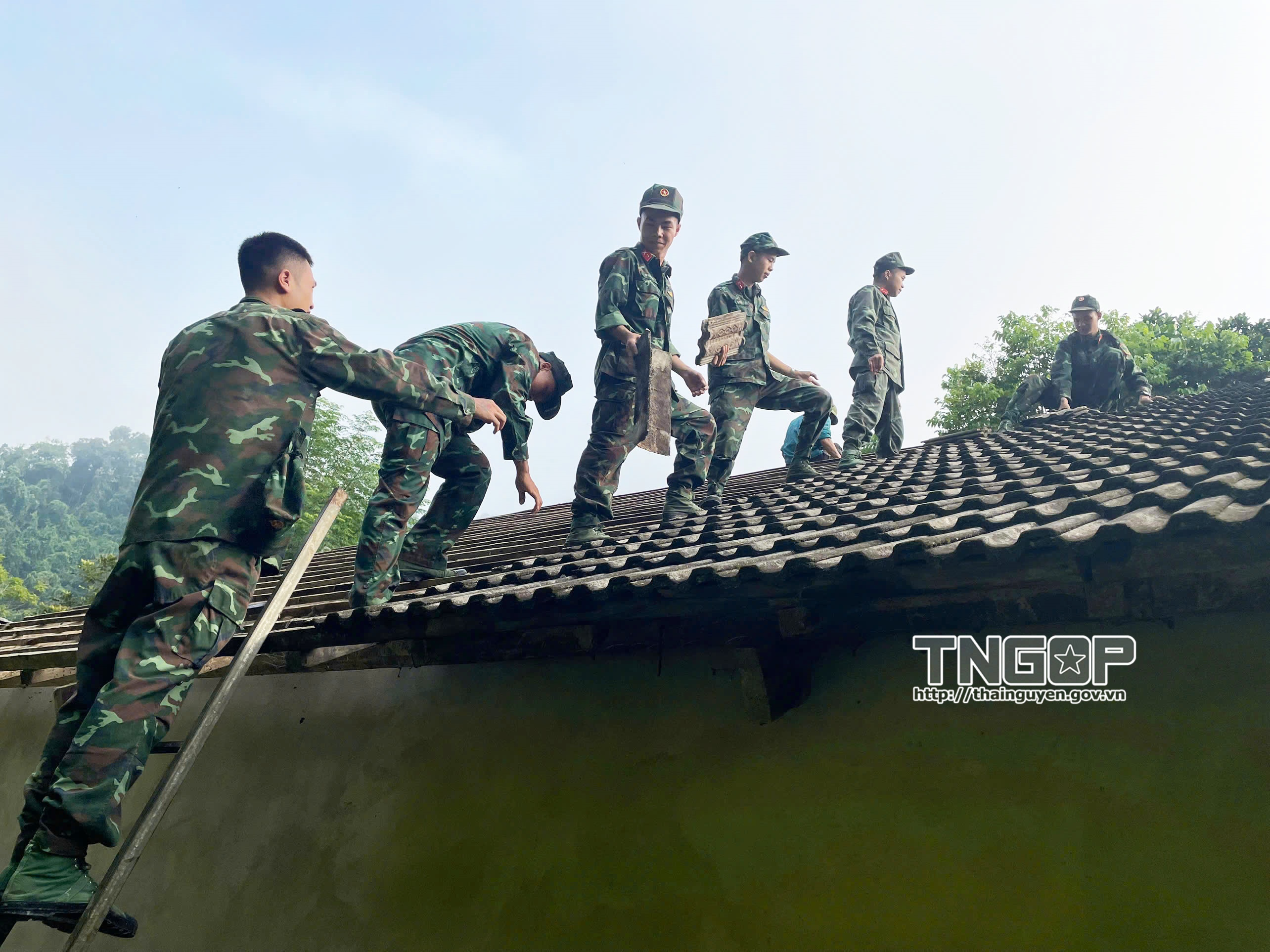 Những bàn tay người lính Trung đoàn 750 tất bật lợp từng mái ngói góp phần mang đến mái ấm nghĩa tình cho hộ nghèo vùng cao