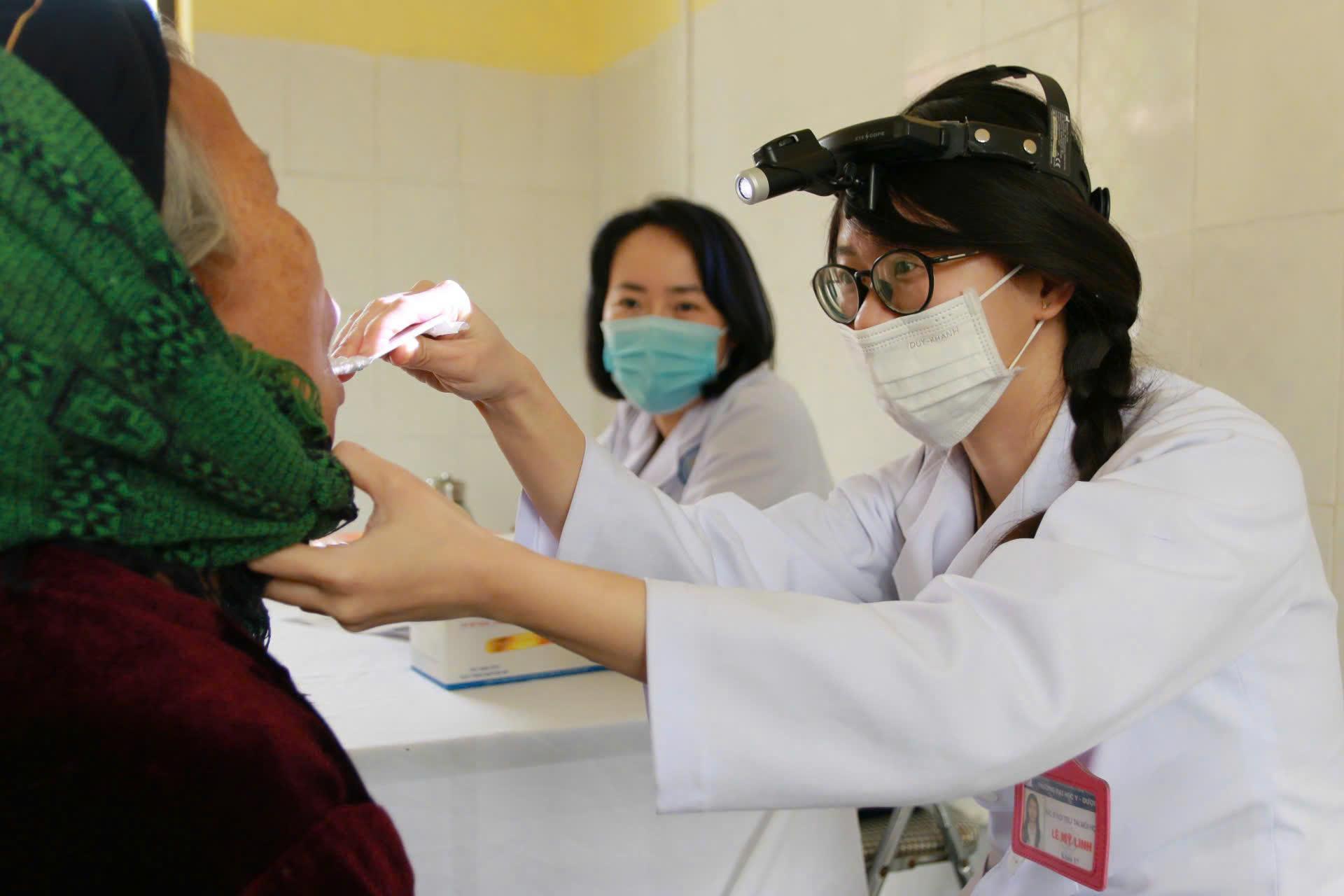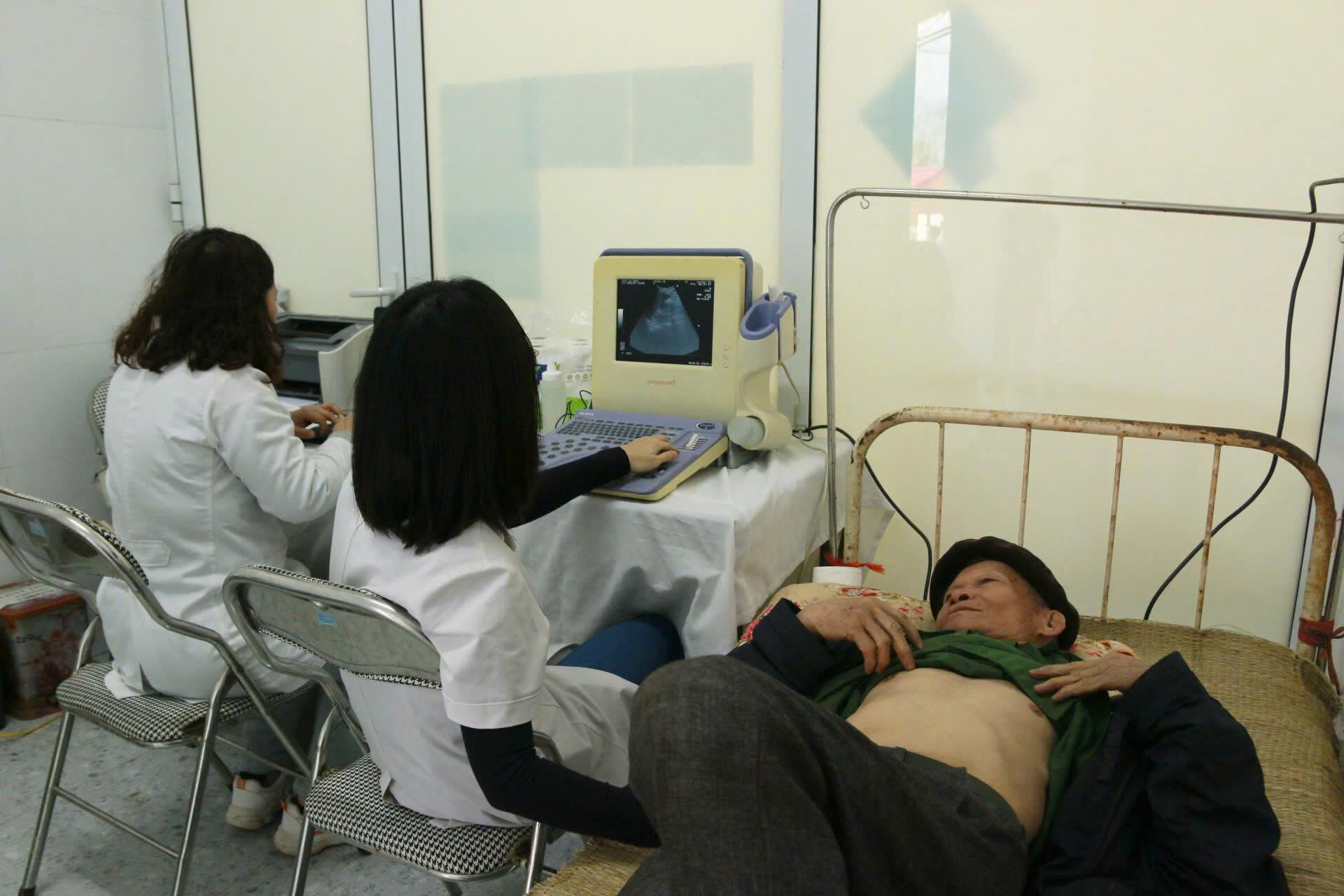 Y bác sĩ khám sức khoẻ cho người cao tuổi tại xã Nghinh Tường