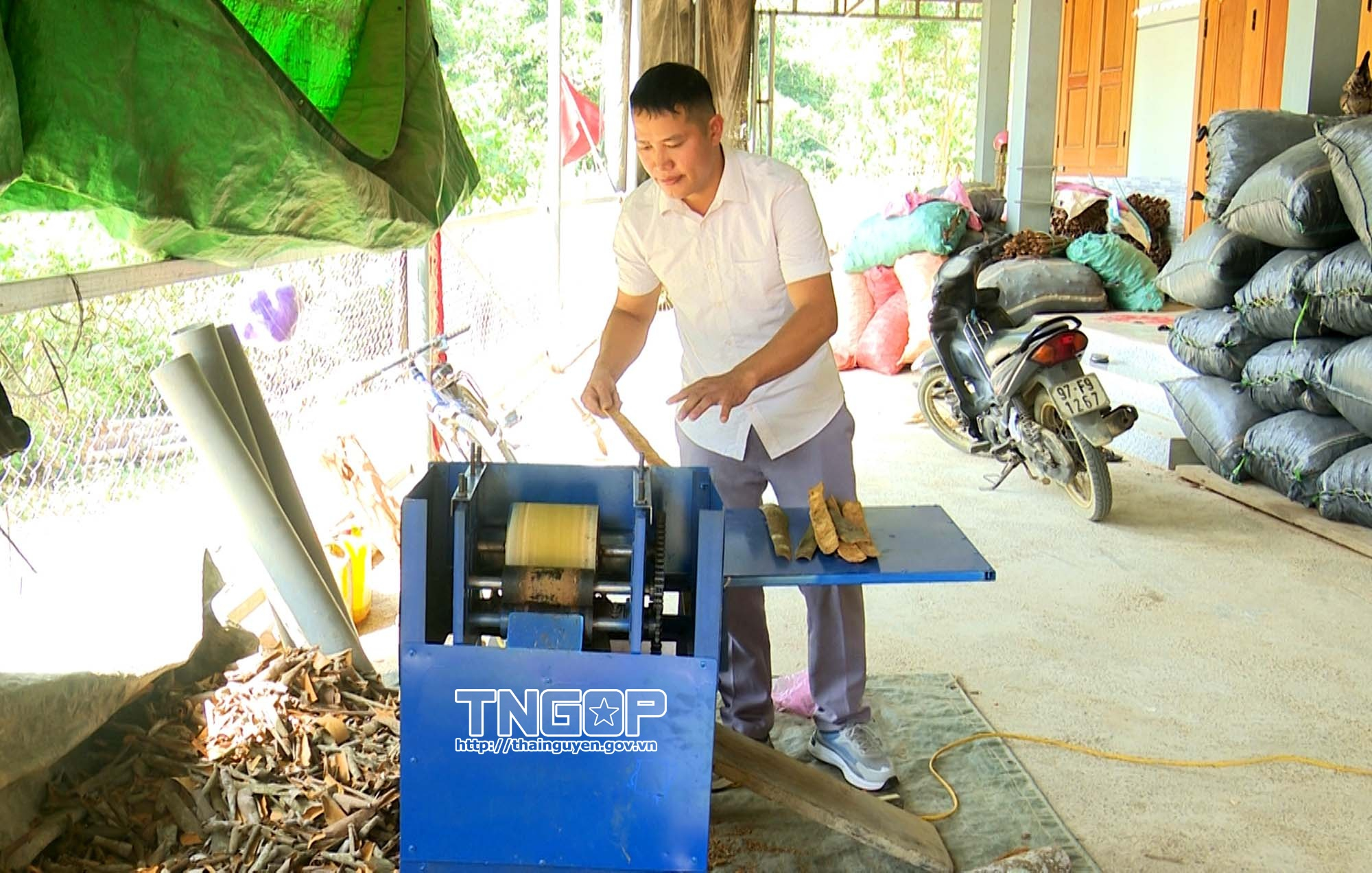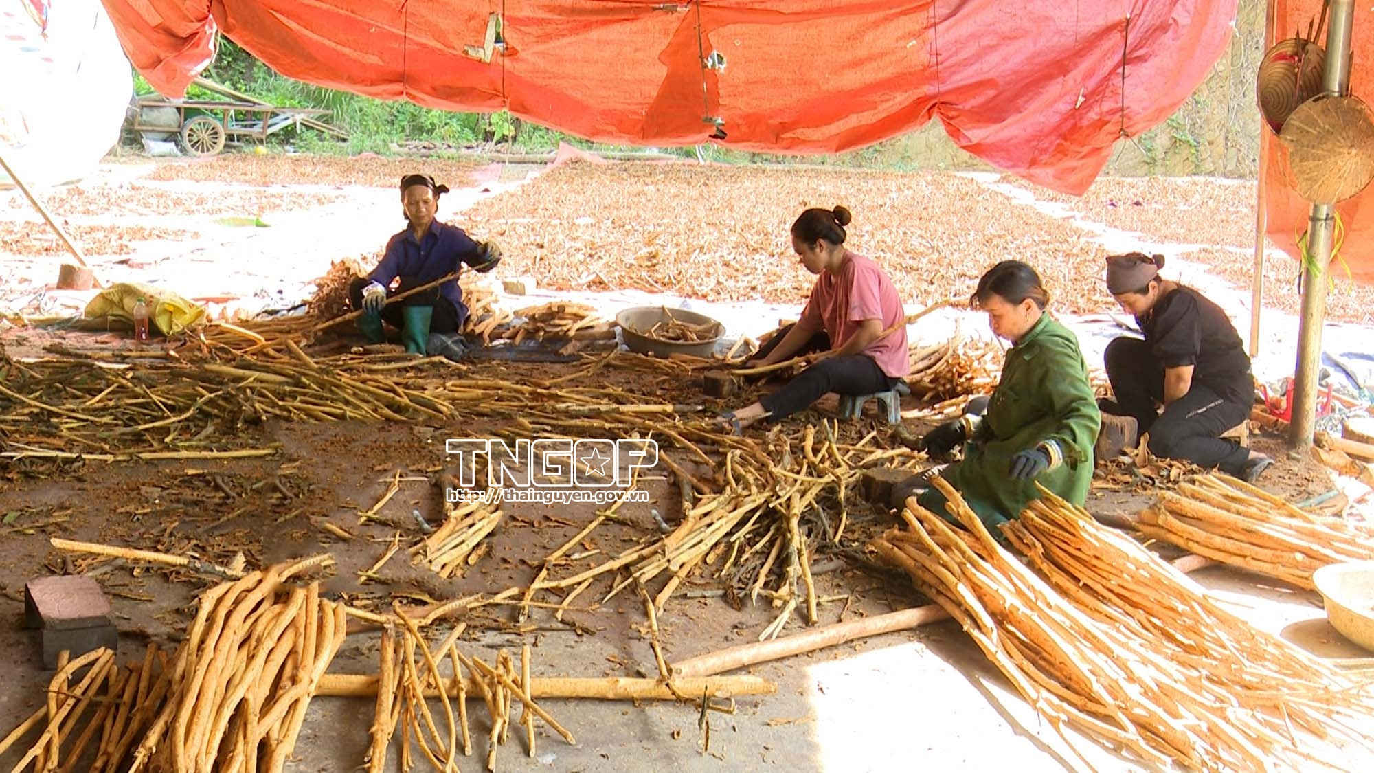 Không chỉ trồng, người dân Tân Thành còn chủ động trong tiêu thụ. Trong đó, cơ sở thu mua của anh Nông Quốc Dưỡng là một điểm tựa quan trọng. Tại đây, sau mỗi buổi thu hoạch, bà con chặt cành, bóc vỏ rồi chở đến bán, với giá thu mua hiện duy trì ở mức 18 - 19 nghìn đồng/kg vỏ tươi và 2 nghìn đồng/kg cành quế. Cơ sở luôn tấp nập người ra vào, đặc biệt vào hai khung giờ cuối buổi sáng và chiều tối. Cơ sở không chỉ tiêu thụ cho bà con trong vùng mà còn tạo việc làm ổn định cho 8 - 10 lao động địa phương. Nhờ sự chủ động trong sản xuất và tiêu thụ, chuỗi giá trị quế tại Tân Thành ngày càng hoàn thiện, mang lại lợi ích thiết thực cho cộng đồng.