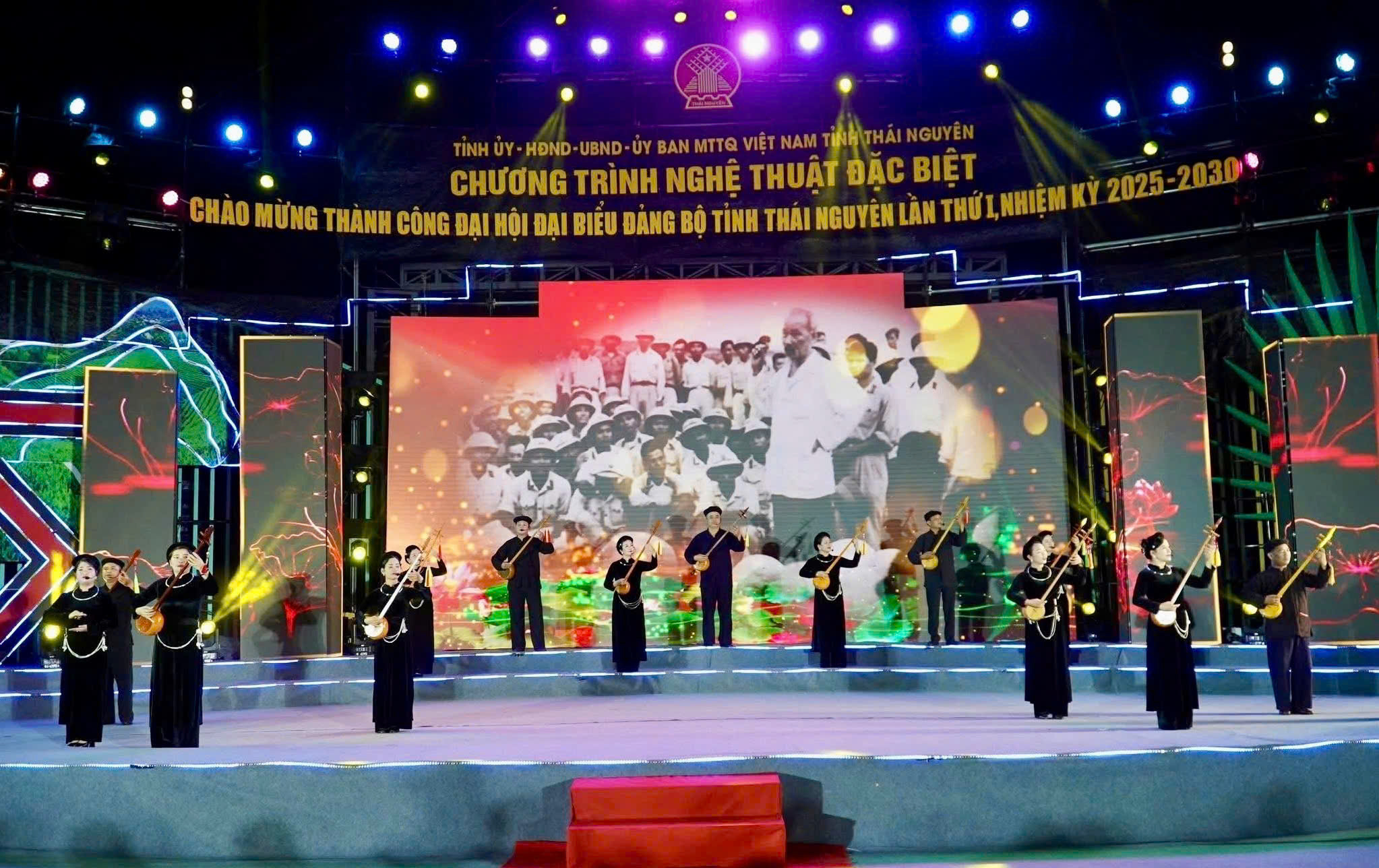 Câu lạc bộ Hát then - Đàn tính Sắc Chàm biểu diễn chào mừng thành công Đại hội đại biểu Đảng bộ tỉnh Thái Nguyên lần thứ I