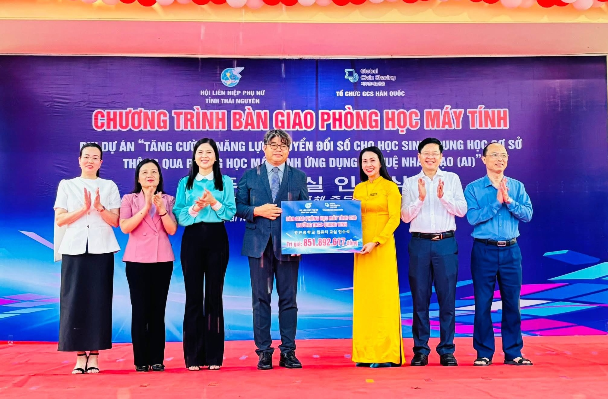 Hội LHPN tỉnh phối hợp với Tổ chức GCS Hàn Quốc bàn giao phòng học máy tính tổng trị giá hơn 851 triệu đồng cho Trường THCS Quang Vinh (phường Quan Triều)