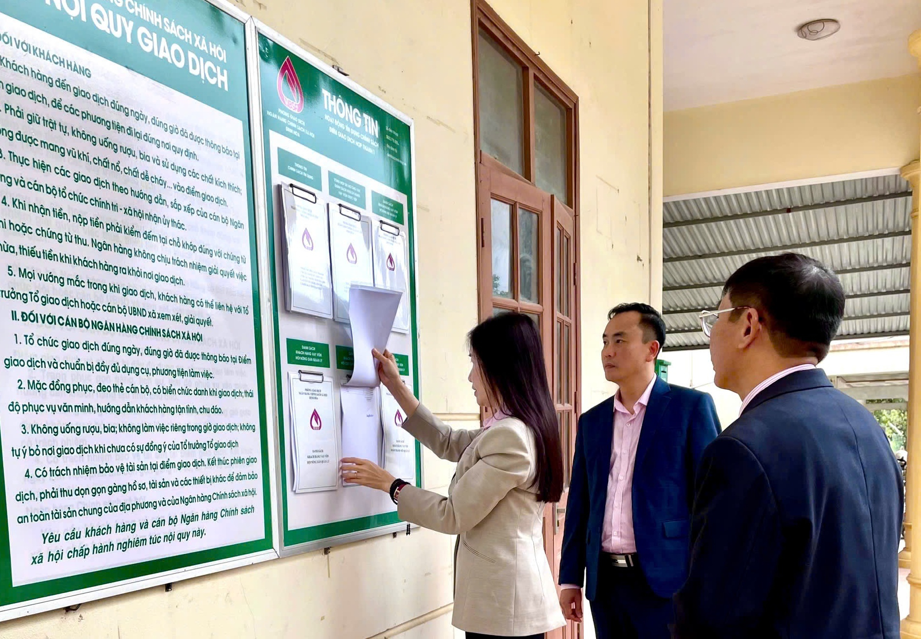 Trước đó, lãnh đạo NHCSXH Việt Nam đã đến thăm hỏi, động viên cán bộ làm nhiệm vụ tại điểm giao dịch Hợp Thành 1, xã Phượng Tiến và ghi nhận những nỗ lực trong việc đưa nguồn vốn tín dụng chính sách đến tận cơ sở, phục vụ người dân kịp thời, hiệu quả.