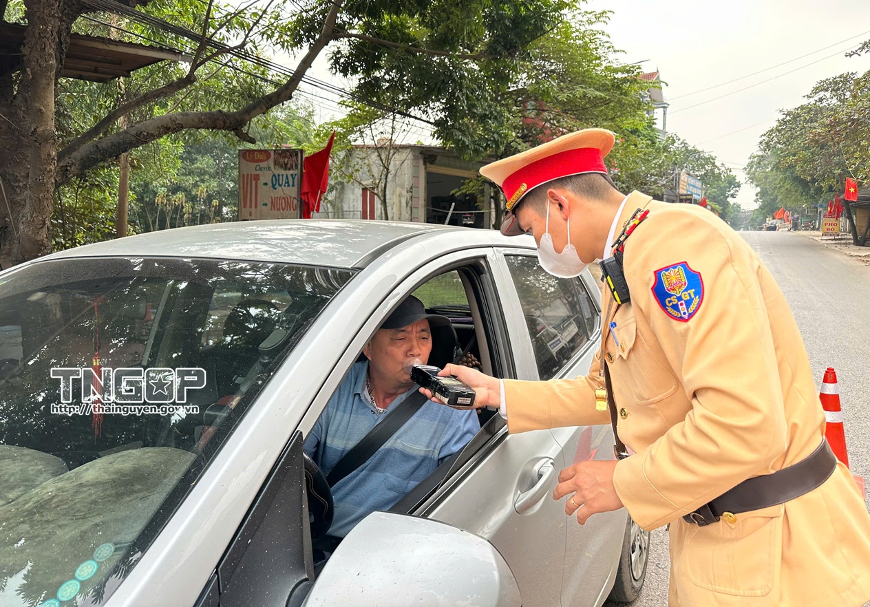 Lực lượng Cảnh sát giao thông kiểm tra nồng độ cồn đối với người điều khiển phương tiện nhằm bảo đảm trật tự, an toàn giao thông trên địa bàn tỉnh