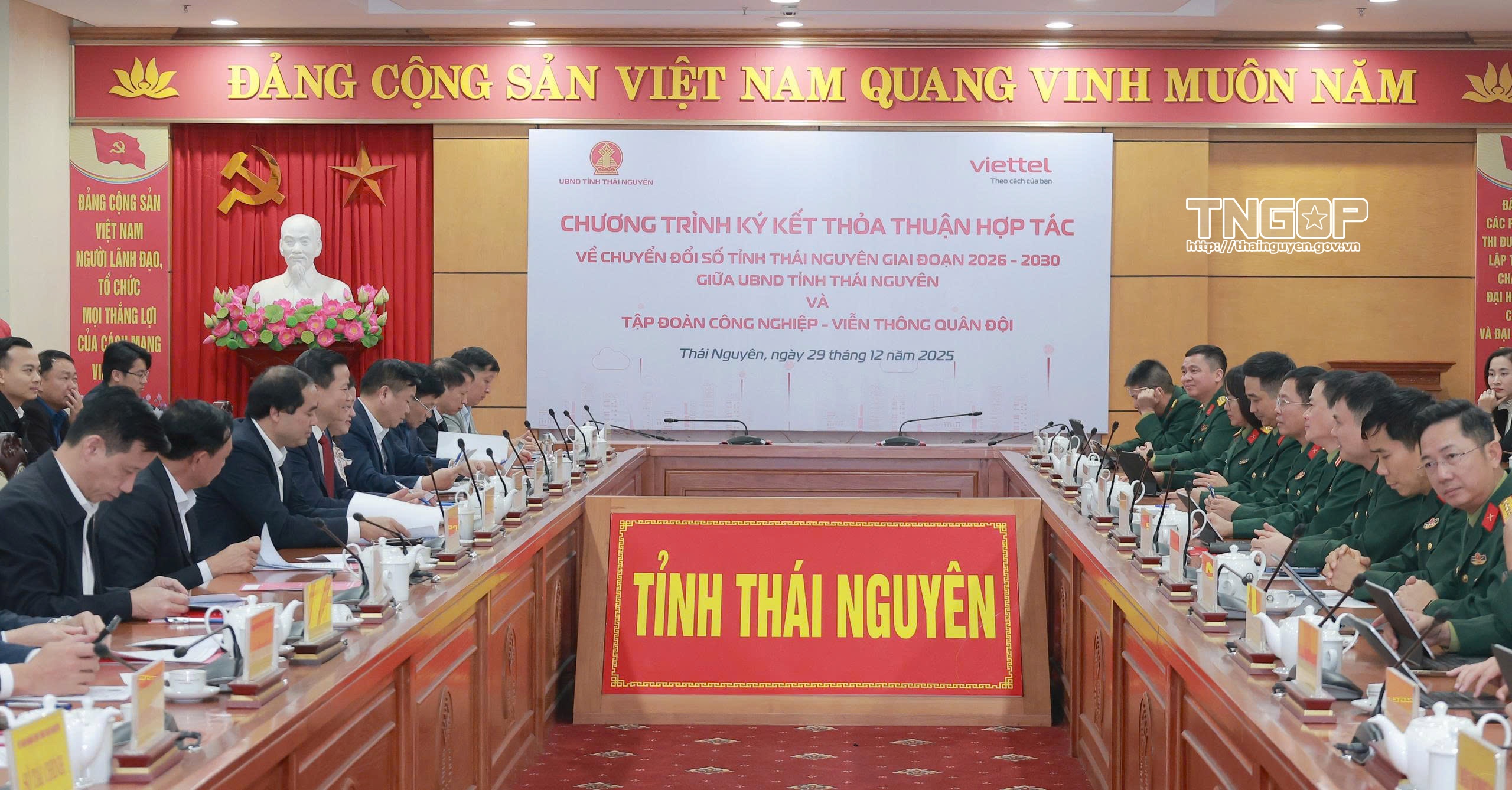 Tỉnh Thái Nguyên xác định phát triển khoa học, công nghệ, đổi mới sáng tạo và chuyển đổi số là nhiệm vụ trọng tâm, xuyên suốt trong giai đoạn tới, gắn với tái cơ cấu nền kinh tế, nâng cao năng suất lao động, hiệu lực quản lý nhà nước và chất lượng phục vụ người dân, doanh nghiệp. Sau khi hợp nhất đơn vị hành chính cấp tỉnh, Thái Nguyên bước vào giai đoạn phát triển mới với quy mô lớn hơn, yêu cầu cao hơn và dư địa phát triển rộng mở hơn. Trên cơ sở đó, Ban Chấp hành Đảng bộ tỉnh đã ban hành Đề án phát triển khoa học, công nghệ, đổi mới sáng tạo và chuyển đổi số giai đoạn 2026 - 2030; trong đó xác định rõ mục tiêu, lộ trình và các nhiệm vụ trọng tâm, phấn đấu đưa chuyển đổi số thực sự trở thành động lực tăng trưởng mới của tỉnh. Để triển khai hiệu quả các mục tiêu này, tỉnh Thái Nguyên đặc biệt coi trọng việc tăng cường hợp tác với các tập đoàn công nghệ, viễn thông lớn của Trung ương, có năng lực, kinh nghiệm và uy tín, trong đó, Tập đoàn Viettel là đối tác chiến lược quan trọng.