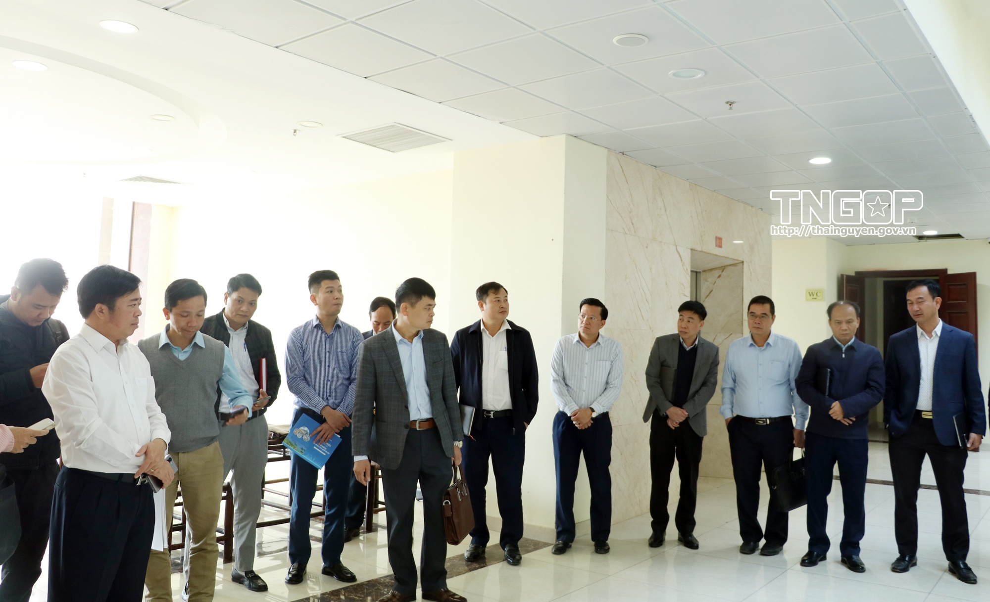 Đại biểu khảo sát tại sảnh tầng 1, trụ sở Đoàn ĐBQH, HĐND, UBND tỉnh Thái Nguyên