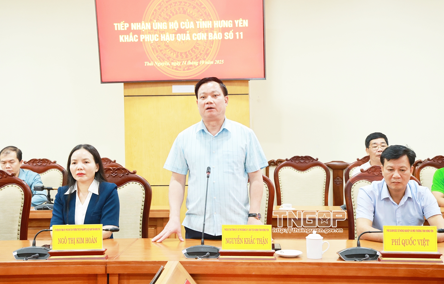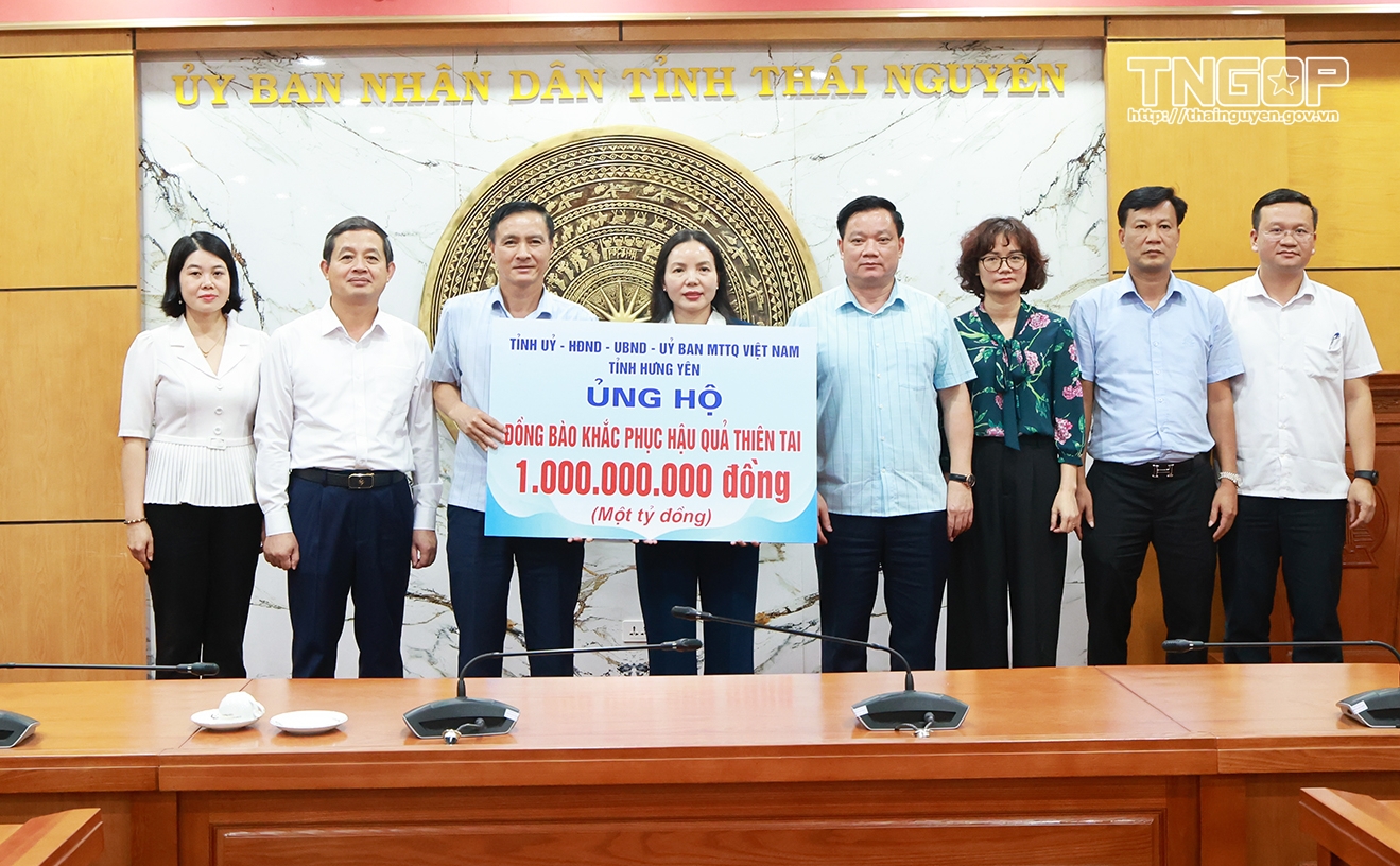 Tại buổi tiếp nhận ủng hộ, đồng chí Nguyễn Khắc Thận, Phó Bí thư Tỉnh ủy, Chủ tịch UBND tỉnh Hưng Yên đã bày tỏ sự cảm thông, chia sẻ sâu sắc trước những thiệt hại mà tỉnh Thái Nguyên phải gánh chịu do bão số 11 và hoàn lưu bão gây ra. Đồng chí nhấn mạnh, với tinh thần “tương thân tương ái”, Đảng bộ, chính quyền và Nhân dân tỉnh Hưng Yên mong muốn được chung tay, góp phần nhỏ bé hỗ trợ Nhân dân Thái Nguyên sớm ổn định cuộc sống, khắc phục khó khăn.