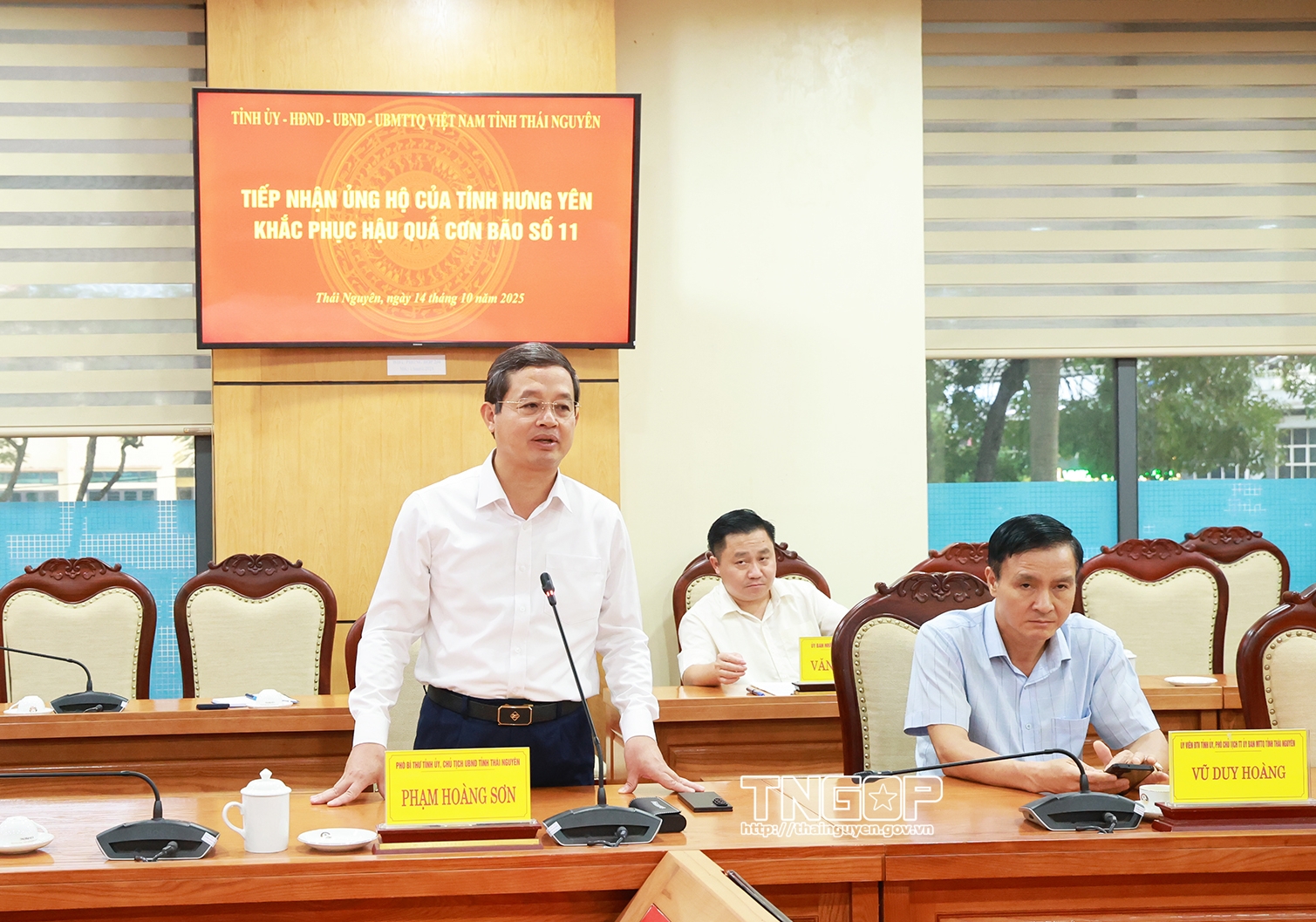 Thay mặt lãnh đạo tỉnh Thái Nguyên, đồng chí Phạm Hoàng Sơn, Phó Bí thư Tỉnh ủy, Chủ tịch UBND tỉnh trân trọng cảm ơn tình cảm, sự quan tâm, hỗ trợ kịp thời của Đảng bộ, chính quyền và Nhân dân tỉnh Hưng Yên. Đồng chí khẳng định đây là nguồn động viên to lớn giúp Thái Nguyên tiếp tục nỗ lực vượt qua khó khăn, khôi phục sản xuất và ổn định đời sống.