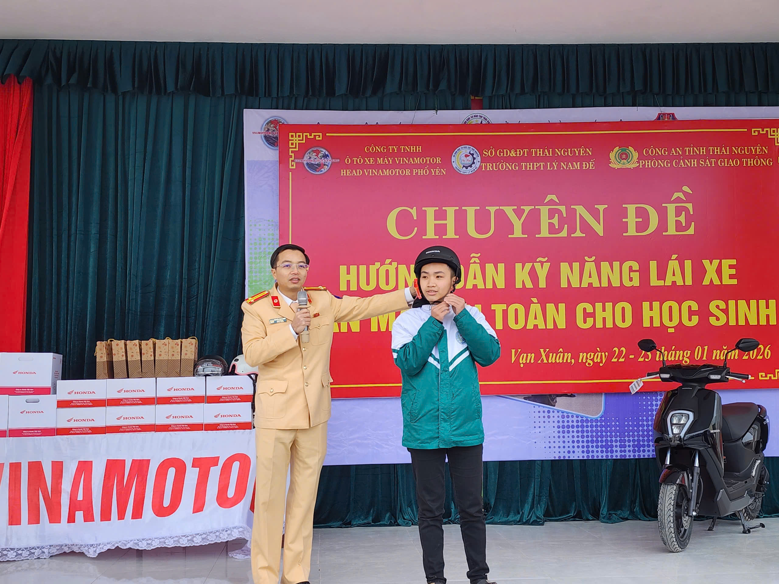 Hoạt động được triển khai theo Kế hoạch phối hợp giữa Công an tỉnh và Sở Giáo dục và Đào tạo tỉnh Thái Nguyên về hướng dẫn kỹ năng lái xe gắn máy an toàn cho học sinh giai đoạn 2025 - 2030. Tại chương trình, cán bộ Phòng Cảnh sát giao thông đã tập trung phổ biến những nội dung cơ bản của Luật Trật tự, an toàn giao thông đường bộ năm 2024; trách nhiệm của người điều khiển phương tiện; quy định về độ tuổi được phép điều khiển xe gắn máy, xe máy điện; các hành vi vi phạm phổ biến và mức xử phạt, đặc biệt là hành vi giao phương tiện cho người chưa đủ điều kiện tham gia giao thông.