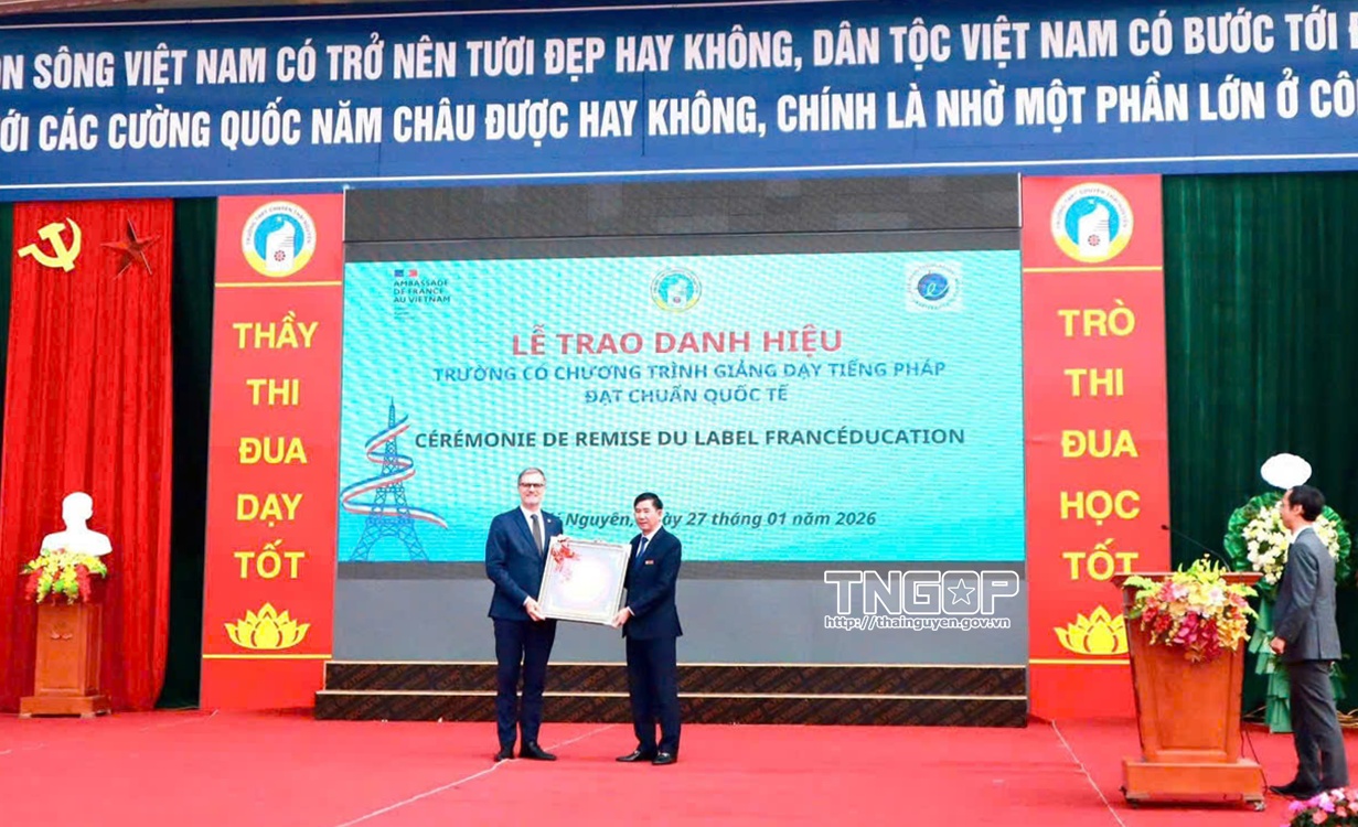 Trường THPT Chuyên Thái Nguyên là ngôi trường thứ 32 trên toàn quốc được gắn biển nhãn hiệu LabelFrancÉducation