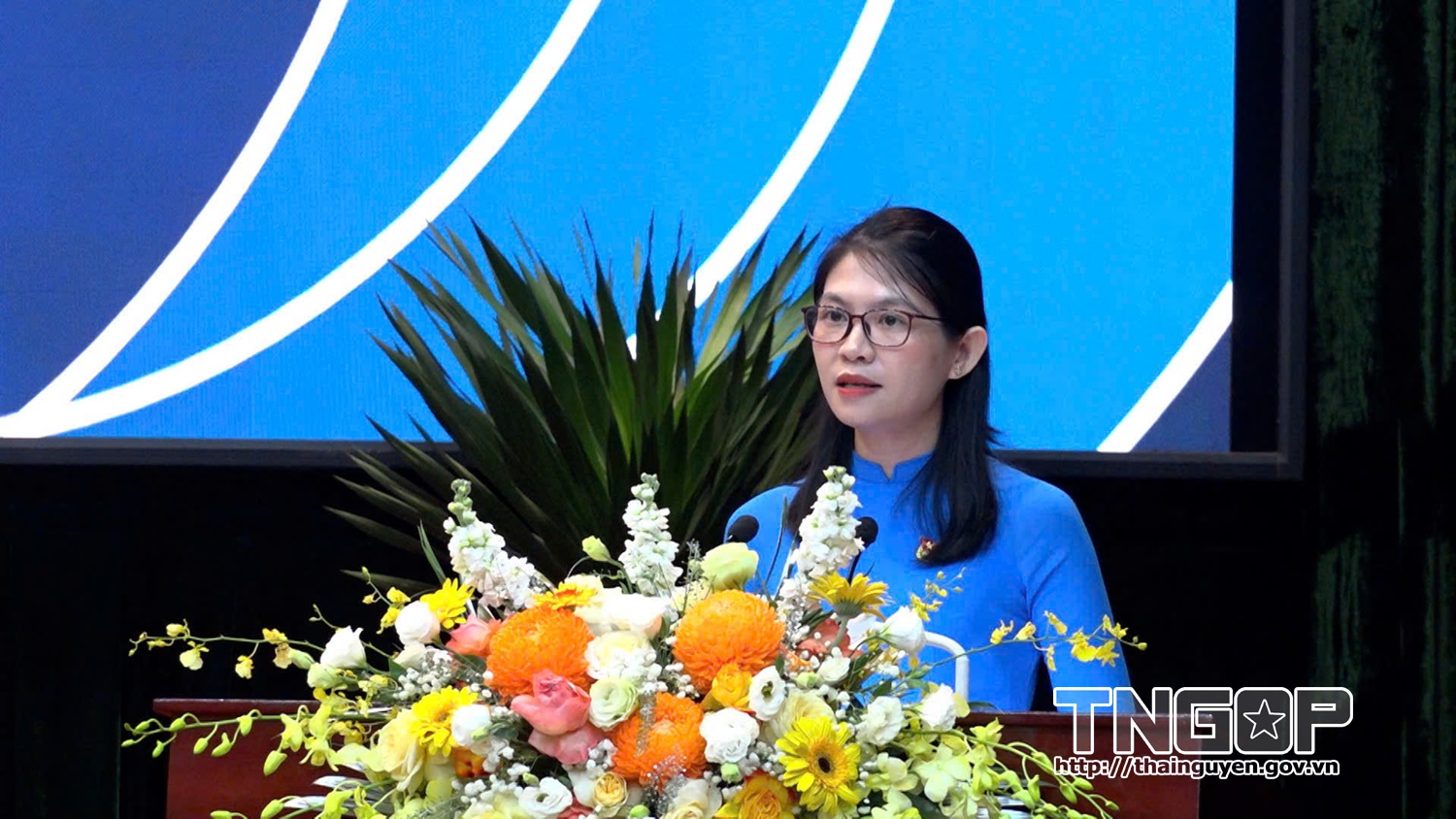 Đồng chí Bí thư Tỉnh đoàn Thái Nguyên Phạm Thị Thu Hiền phát biểu tại Đại hội