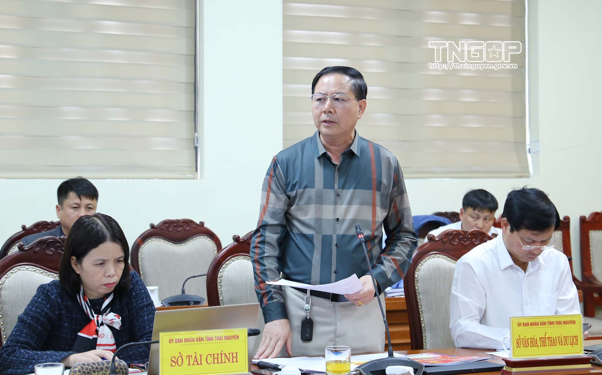 Đồng chí Đoàn Văn Công, Phó Giám đốc Sở Văn hóa - Thể thao và Du lịch báo cáo tại cuộc họp