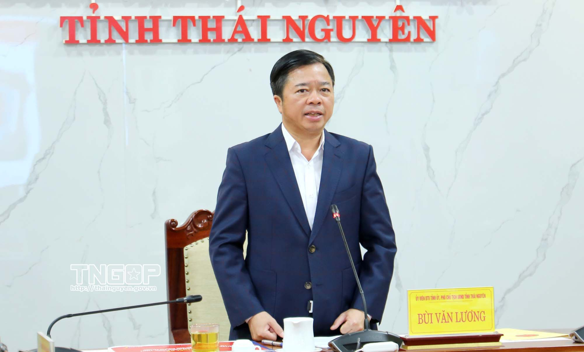 Đồng chí Phó Chủ tịch UBND tỉnh Bùi Văn Lương phát biểu tại cuộc họp