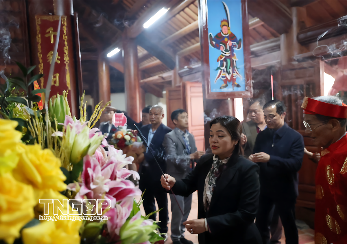 Trước khi diễn ra Lễ khánh thành, đồng chí Nguyễn Thị Loan, Phó Chủ tịch UBND tỉnh và các đại biểu đã dâng hương trong đình Phương Độ