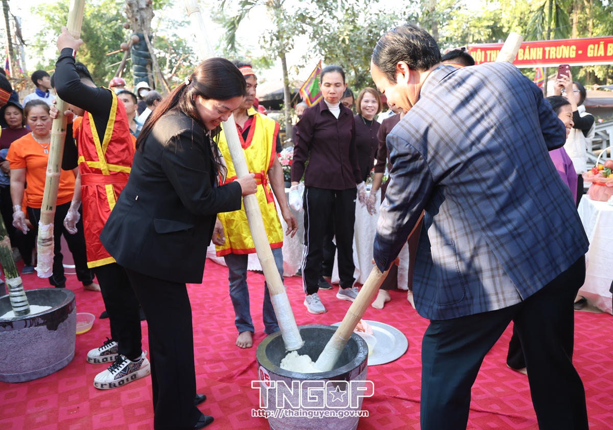 Đồng chí Nguyễn Thị Loan, Phó Chủ tịch UBND tỉnh tặng hoa chúc mừng xã Phú Bình và người dân làng Phương Độ