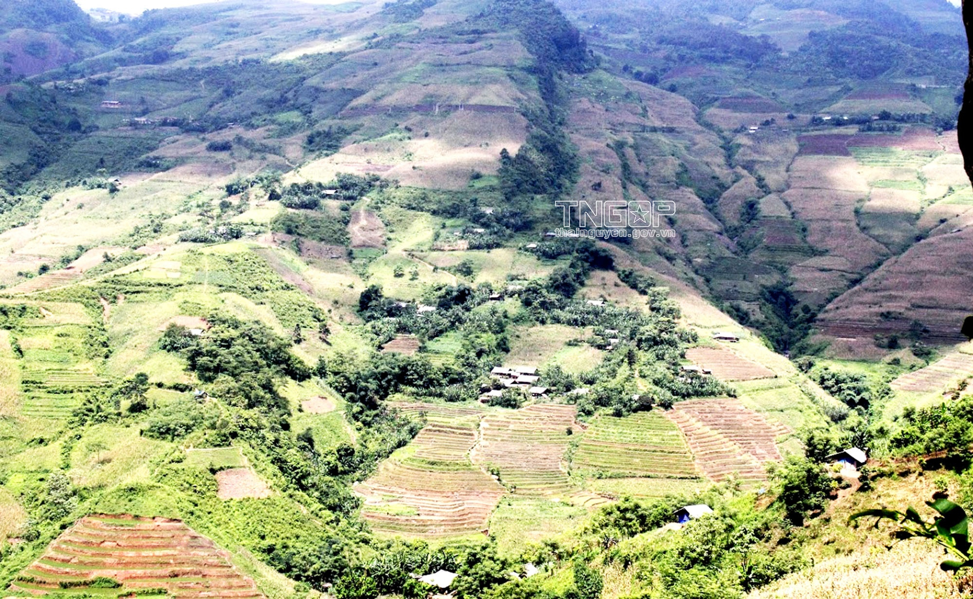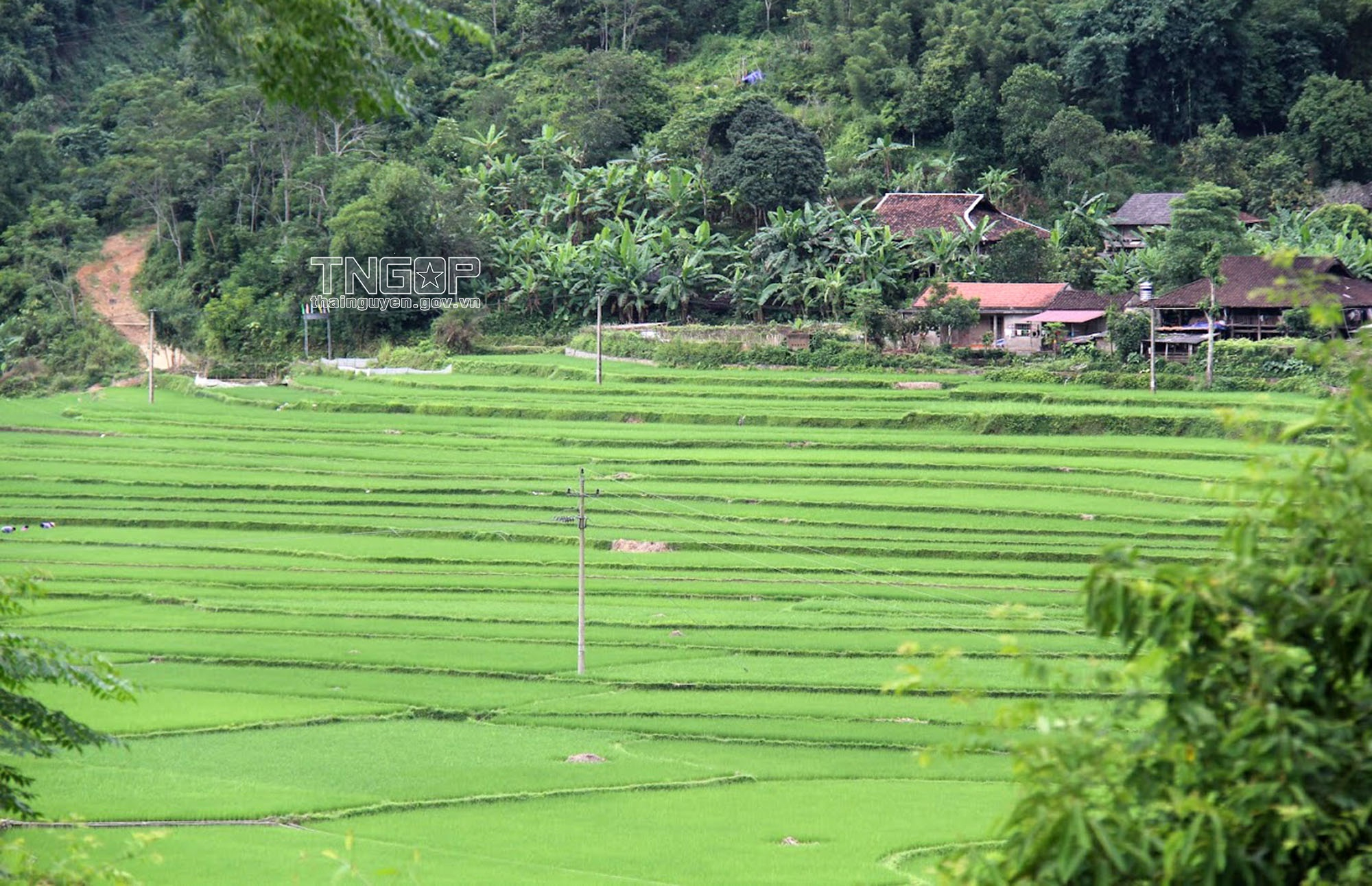 Những ngôi nhà nhỏ, những bản làng yên bình nép mình trên triền đồi, xen lẫn với những thửa ruộng bậc thang uốn lượn đã tạo nên một bức tranh phong cảnh đặc trưng của vùng đất Cao Minh.