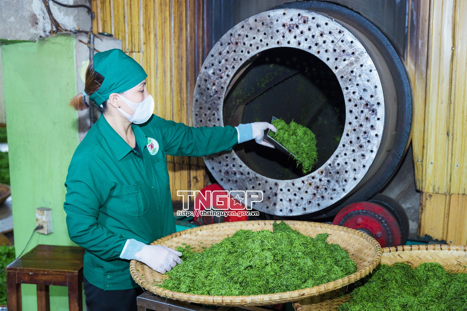Sản phẩm chè sau công đoạn diệt men giữ được màu xanh, hương thơm tự nhiên