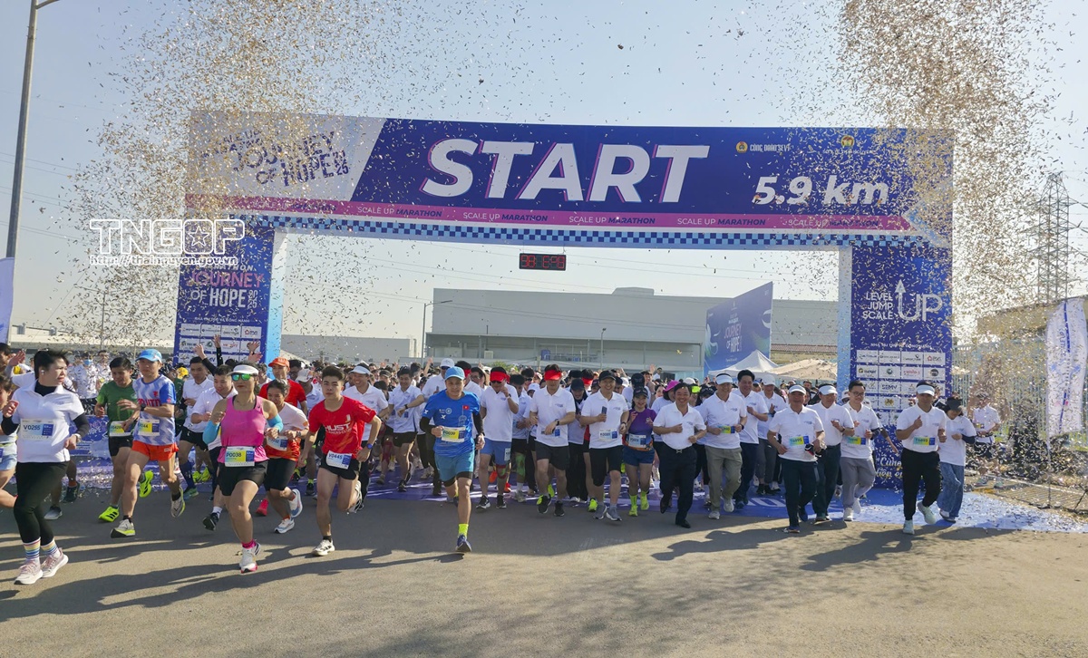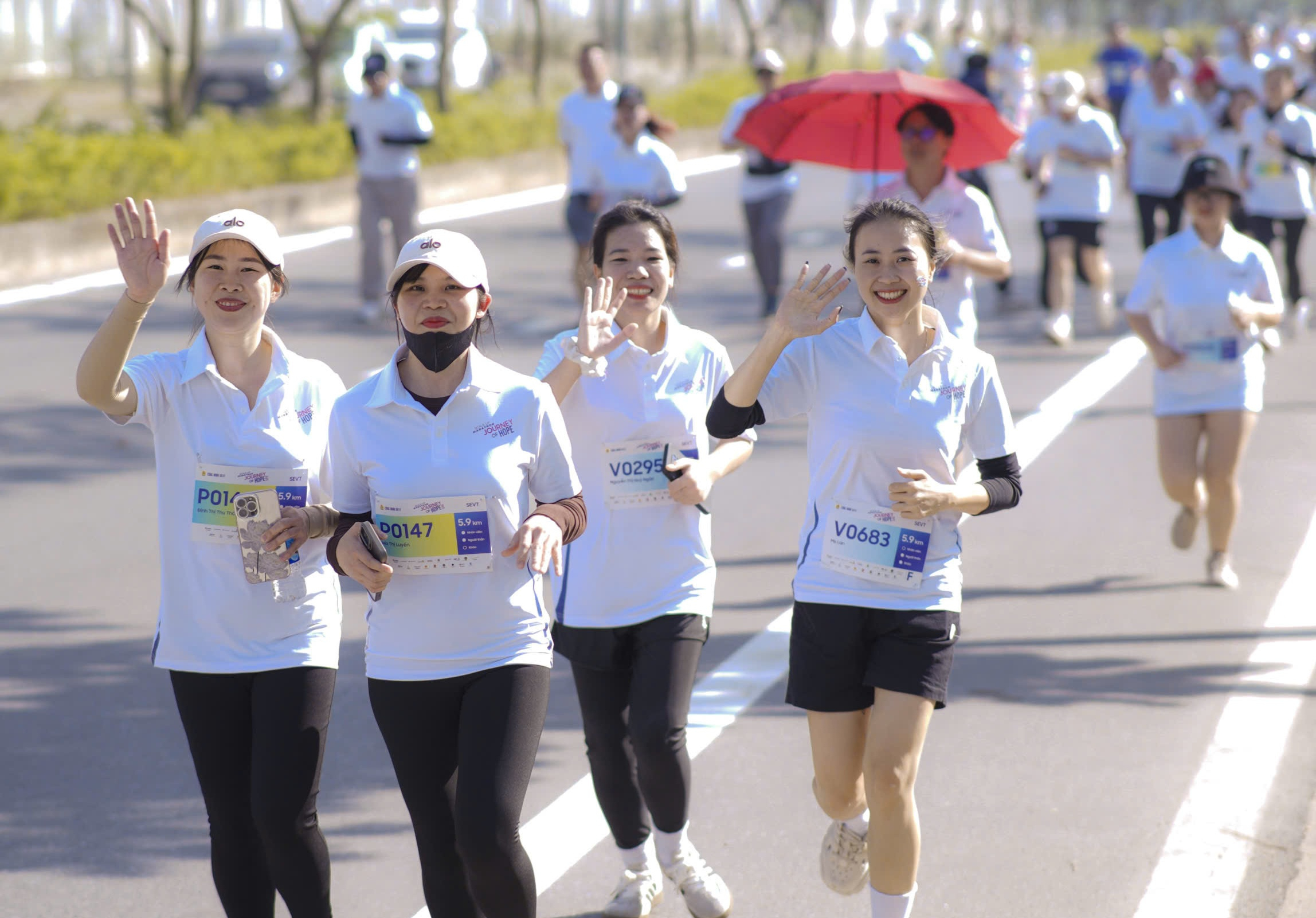Các vận động viên tham gia chạy bộ trong không khí sôi động và hứng khởi