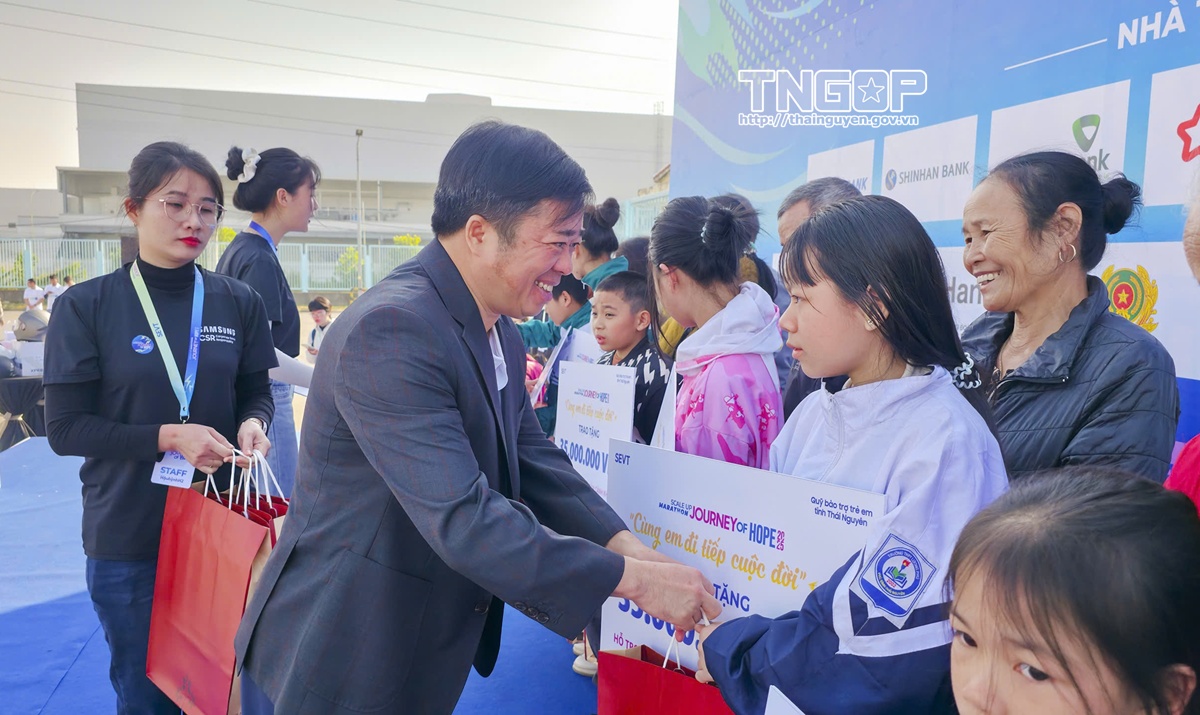 Ông Kim Iee Soo, Tổng Giám đốc Công ty SEVT trao quà cho trẻ em có hoàn cảnh khó khăn