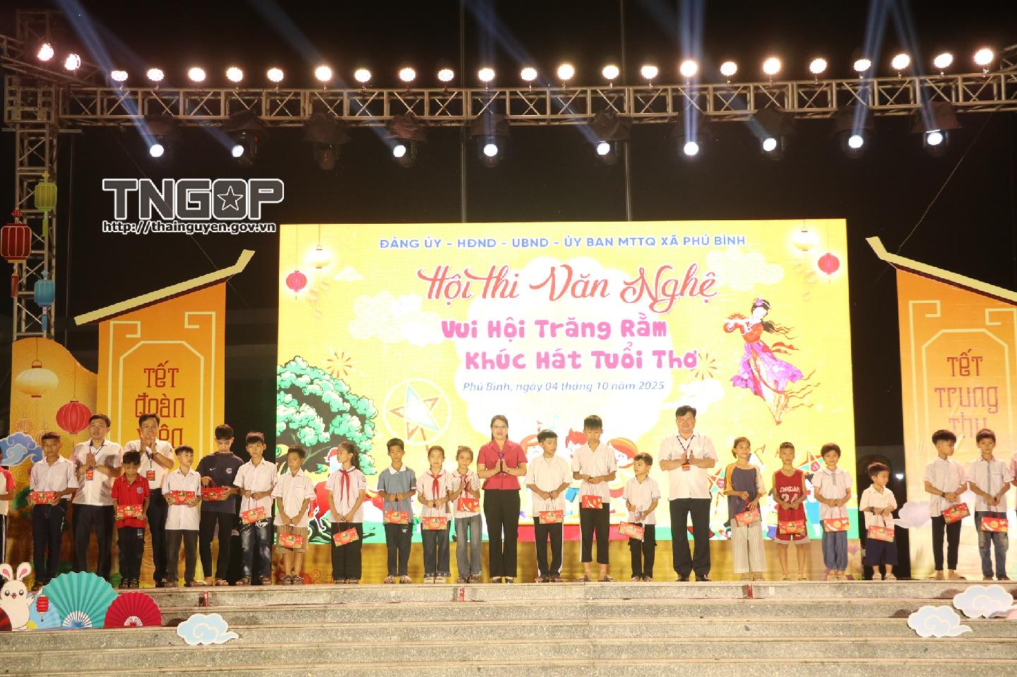 Tối 4/10, tại Quảng trường trung tâm xã Phú Bình, UBND xã Phú Bình tổ chức ”Đêm hội trăng rằm năm 2025” và Hội thi văn nghệ với chủ đề “Vui hội trăng rằm - Khúc hát tuổi thơ’. Dự Chương trình có các đồng chí lãnh đạo Đảng ủy, HĐND, UBND xã; đại diện các cơ quan, đơn vị cùng đông đảo phụ huynh, Nhân dân và các em thiếu niên, nhi đồng trên địa bàn.