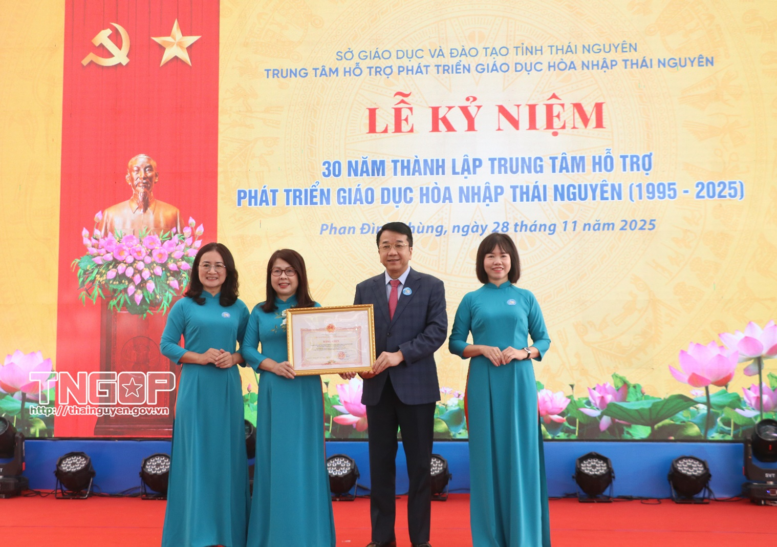 Sáng 28/11, Trung tâm Hỗ trợ phát triển giáo dục hòa nhập Thái Nguyên tổ chức Lễ kỷ niệm 30 năm ngày Thành lập (1995 - 2025). Đồng chí Nguyễn Thanh Bình, Phó Bí thư Tỉnh ủy, Phó Chủ tịch Thường trực UBND tỉnh dự buổi Lễ.