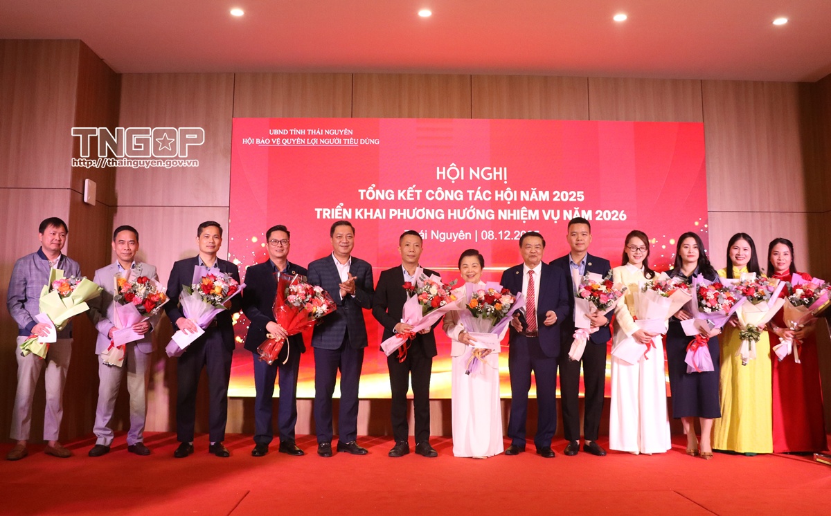 Chiều 8/12, Hội Bảo vệ quyền lợi người tiêu dùng tỉnh Thái Nguyên tổ chức Hội nghị tổng kết công tác năm 2025, triển khai nhiệm vụ năm 2026.