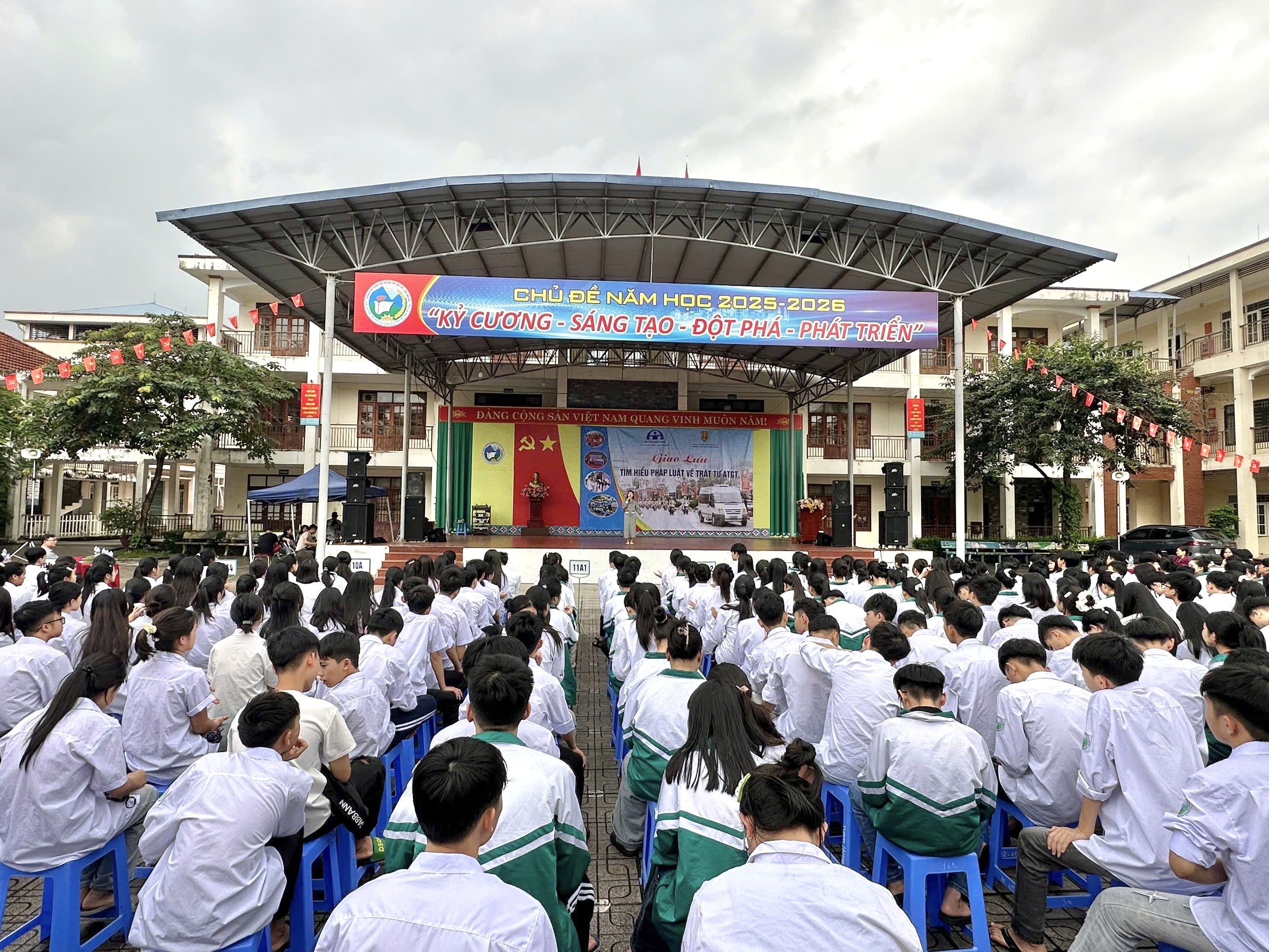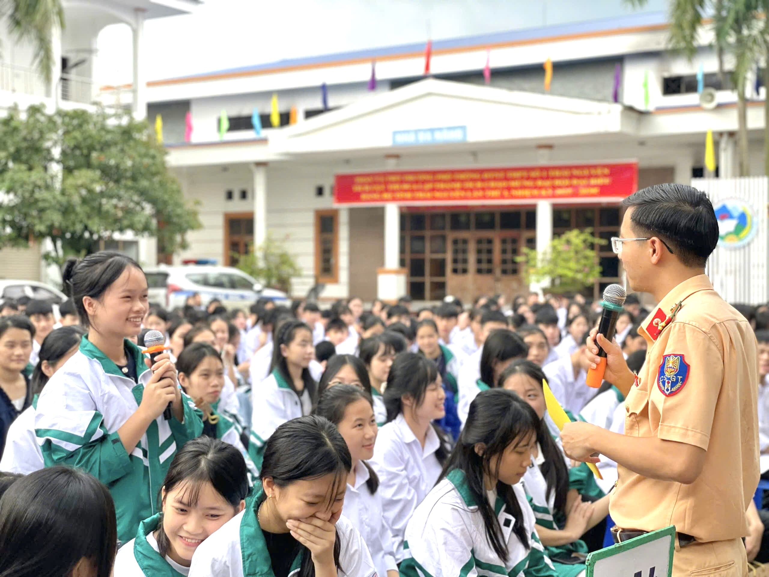 Đông đảo học sinh, giáo viên Trường THPT Dân tộc Nội trú Thái Nguyên tham gia giao lưu tìm hiểu pháp luật về trật tự an toàn giao thông