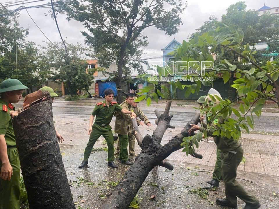 Lực lượng công an TP. Phổ Yên hỗ trợ người dân khắc phục hậu quả của bão số 3